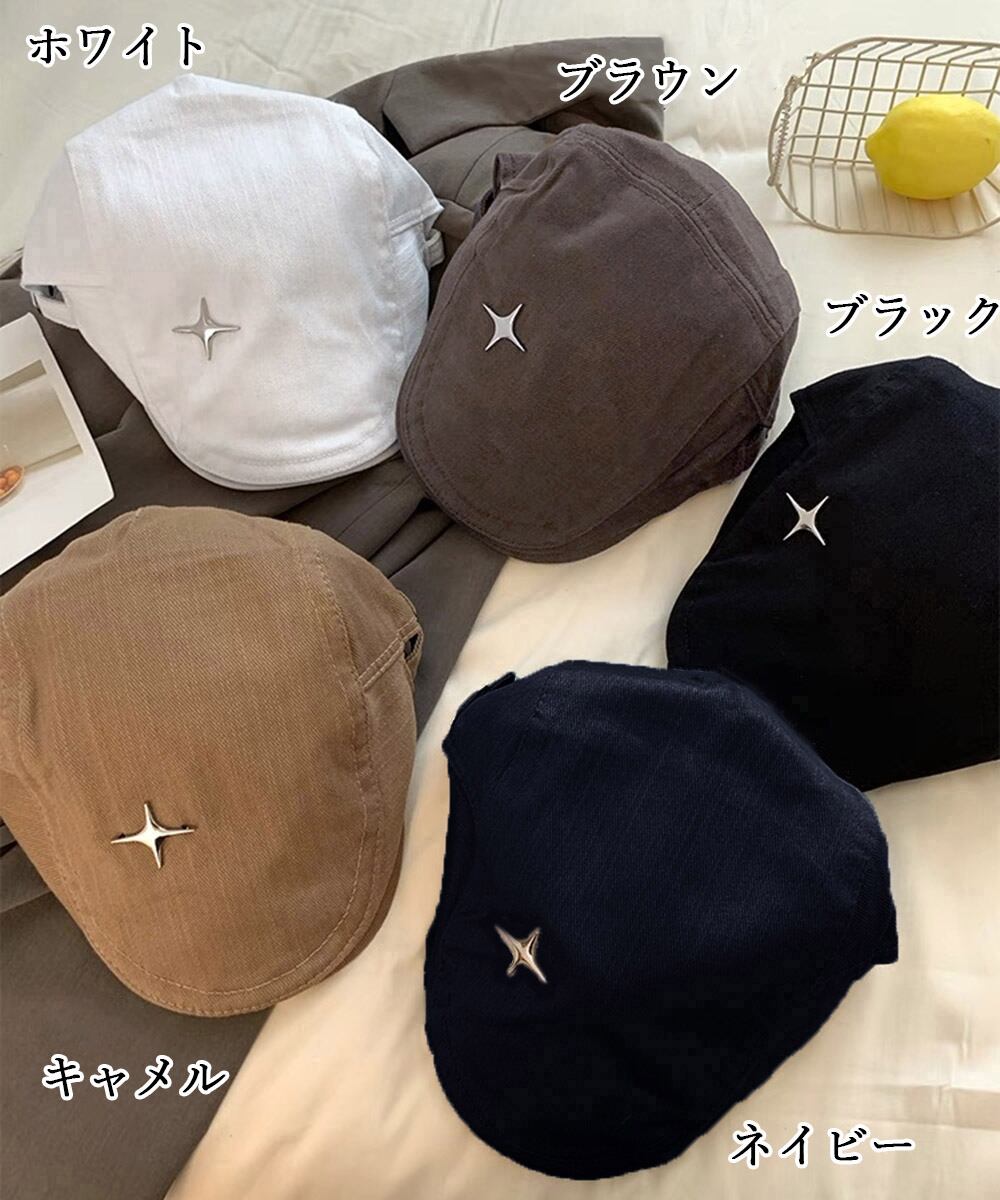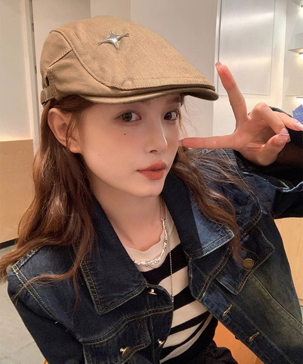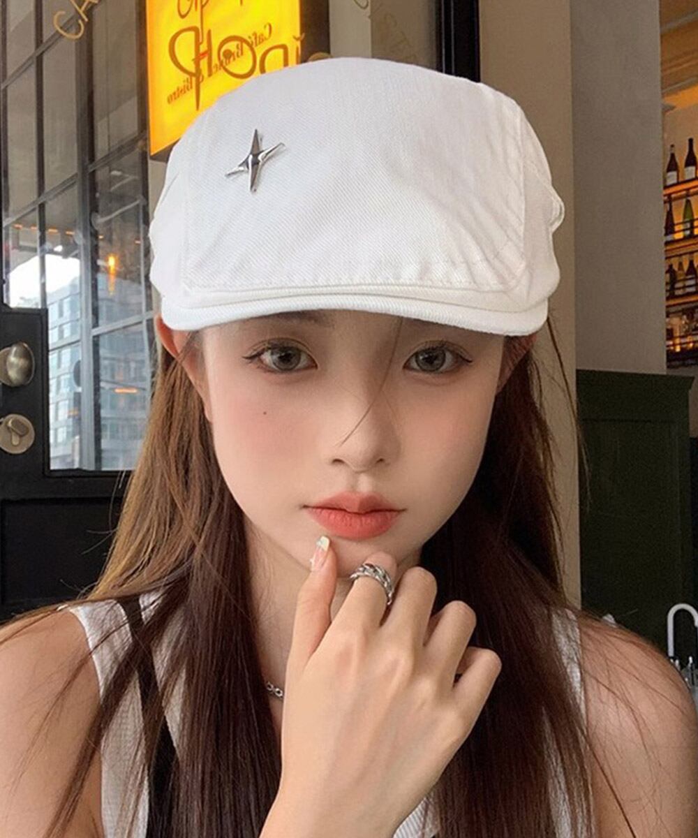 星形のメタル装飾リベットが付いた可愛らしいキャスケットです。