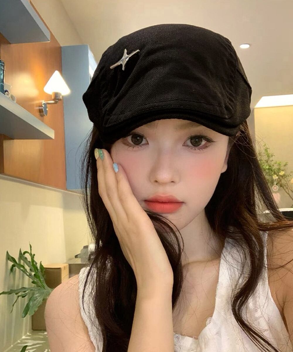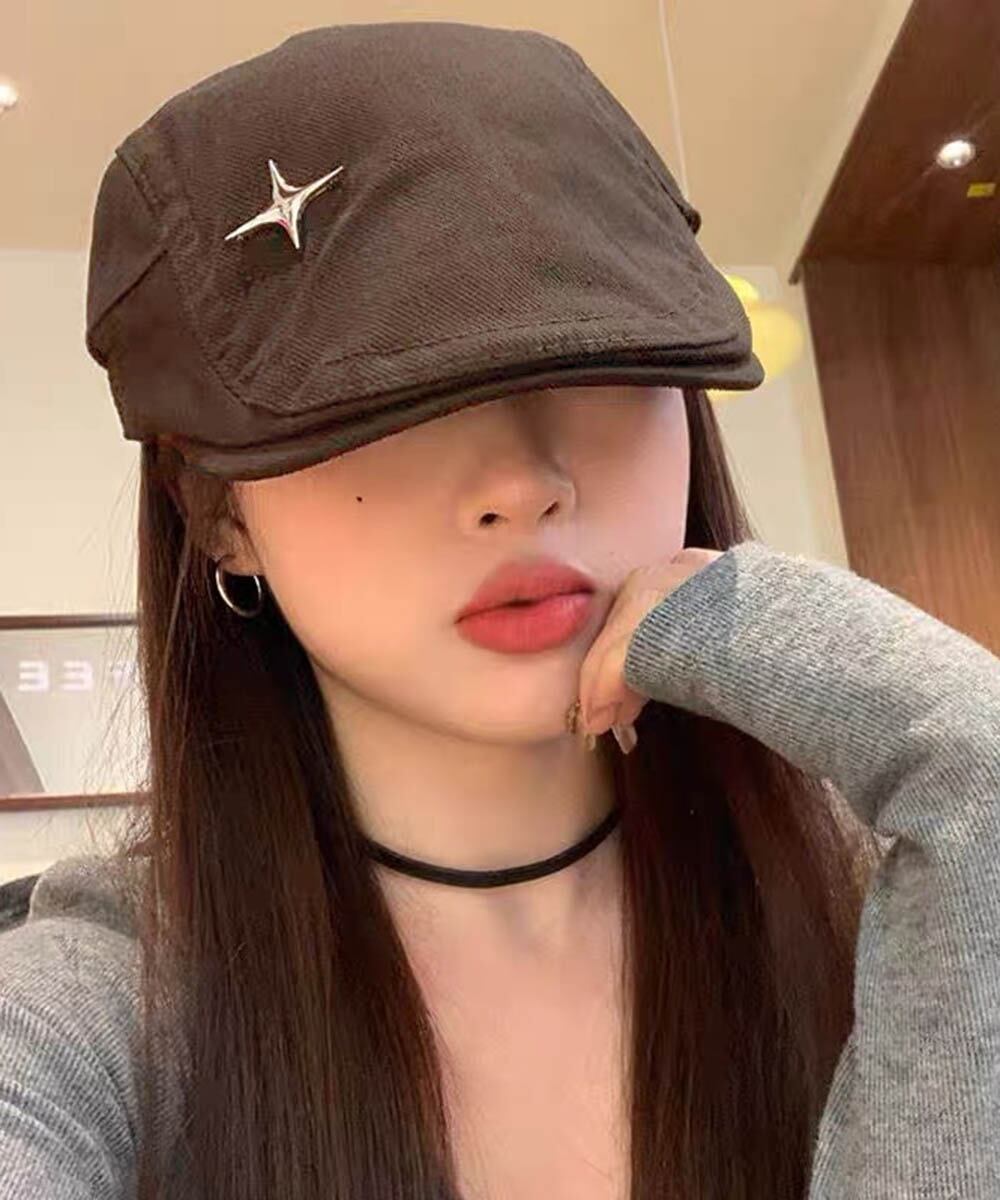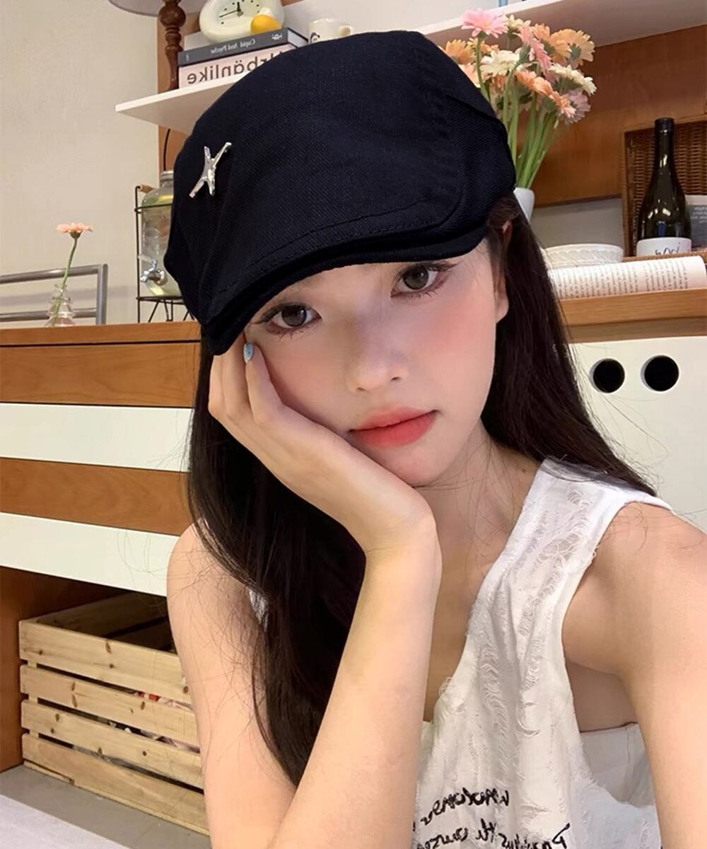 星形のメタル装飾リベットが付いた可愛らしいキャスケットです。
