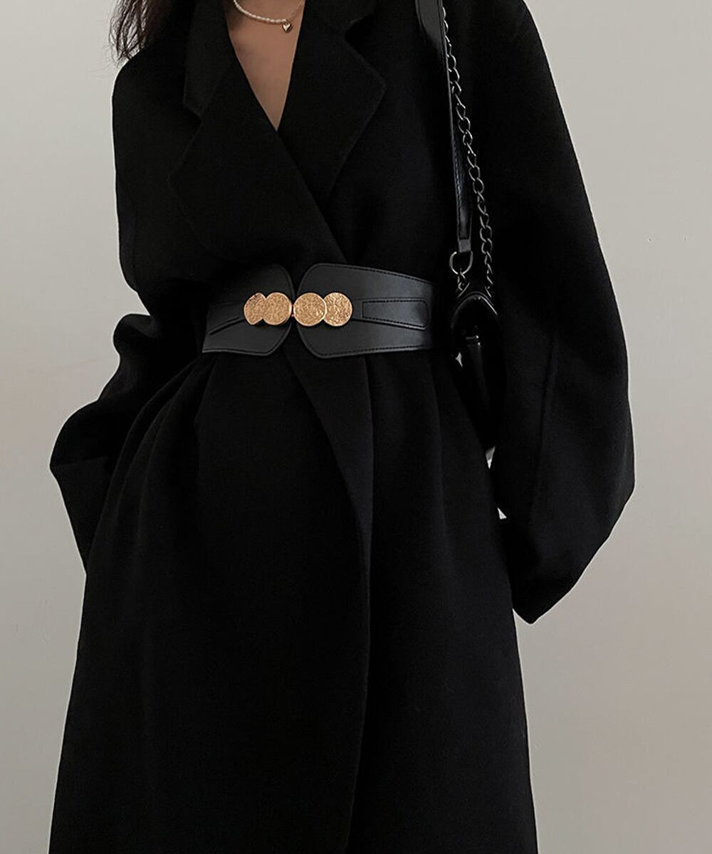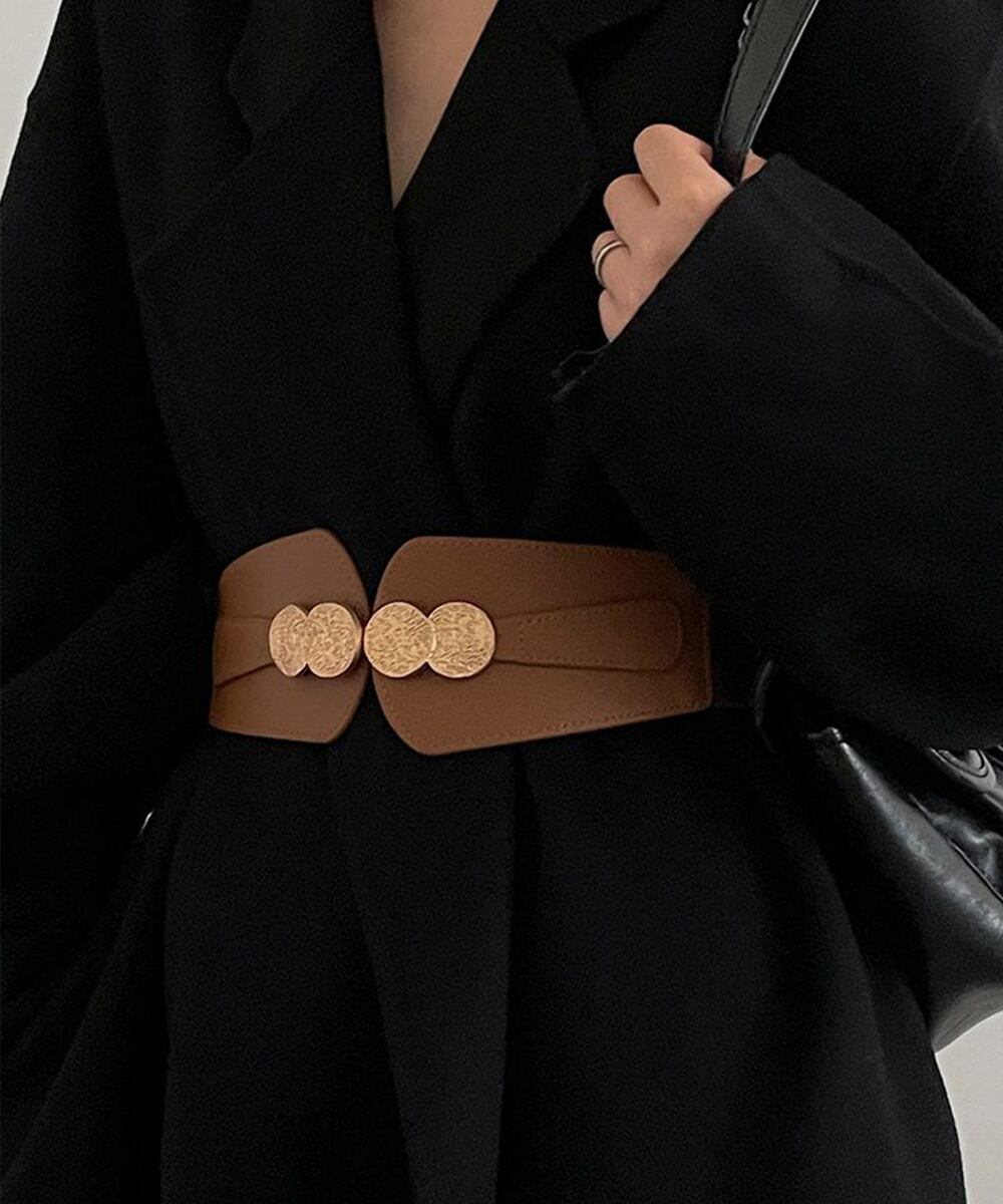 シンプルながら存在感があり、コーデのワンポイントになるPUレザーとゴムの異素材で仕上げたワイドベルト。