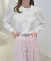 とろみ感のある素材が女性らしさを演出するパフスリーブブラウス