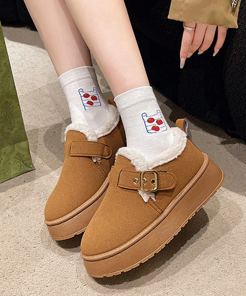 厚底ムートンブーツ 裏起毛ショートブーツ