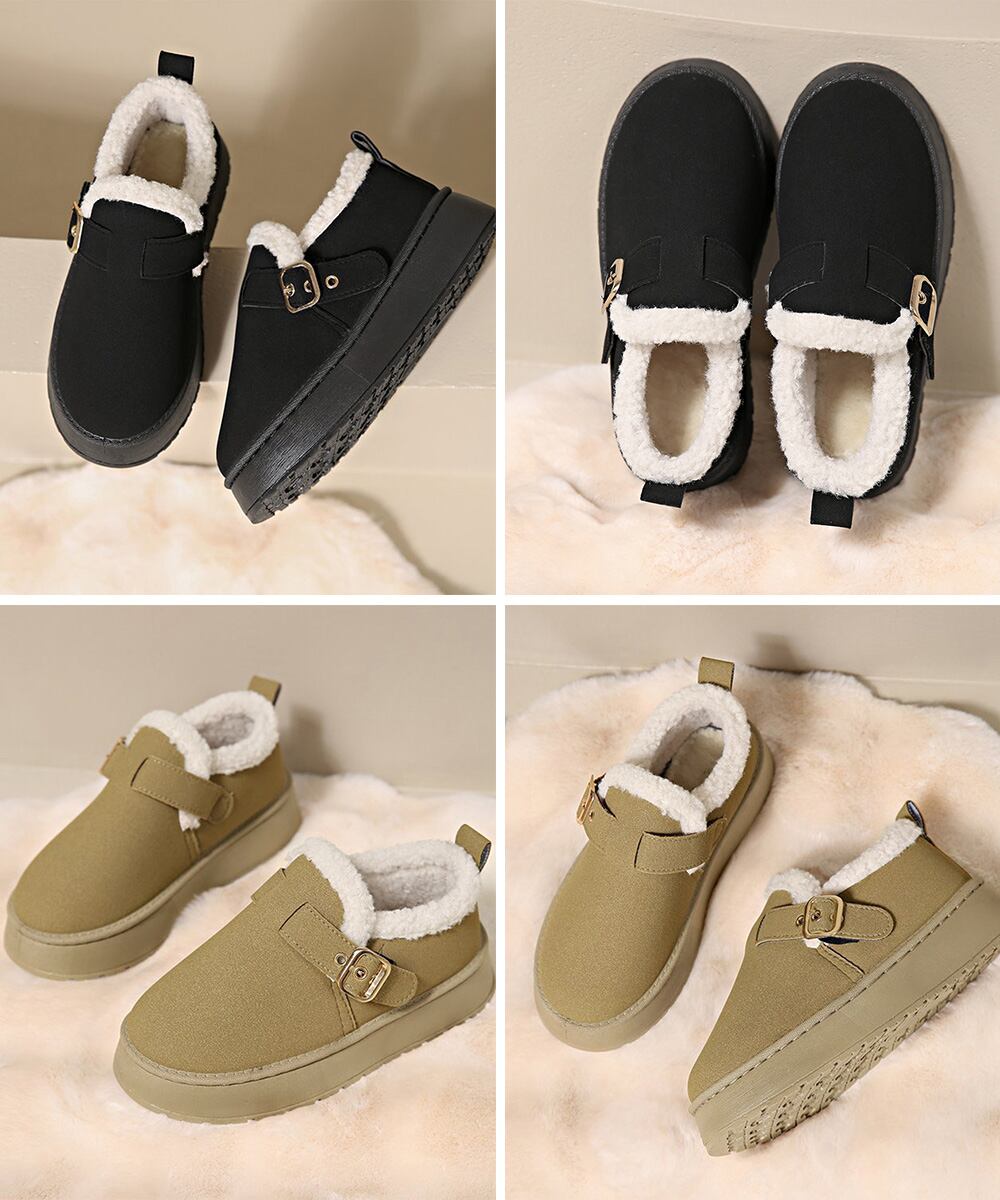 歩きやすい防寒ブーツ レディース 保温 裏ボアブーツ ベルト付き 暖かいブーツ もこもこシューズ あったか冬靴 モカシン