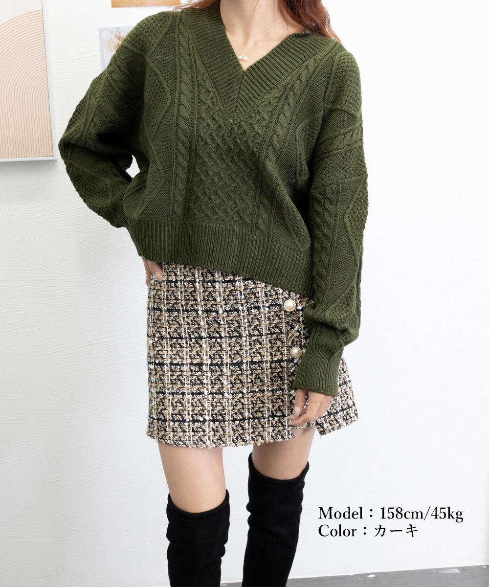 こなれ感のあるざっくりケーブル編みと、ぽわん袖の組み合わせが特徴で、表情豊かに個性を放つ一枚