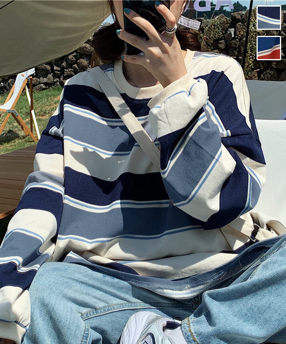 大人っぽいボーダーデザインとボリューム感のあるトレーナー