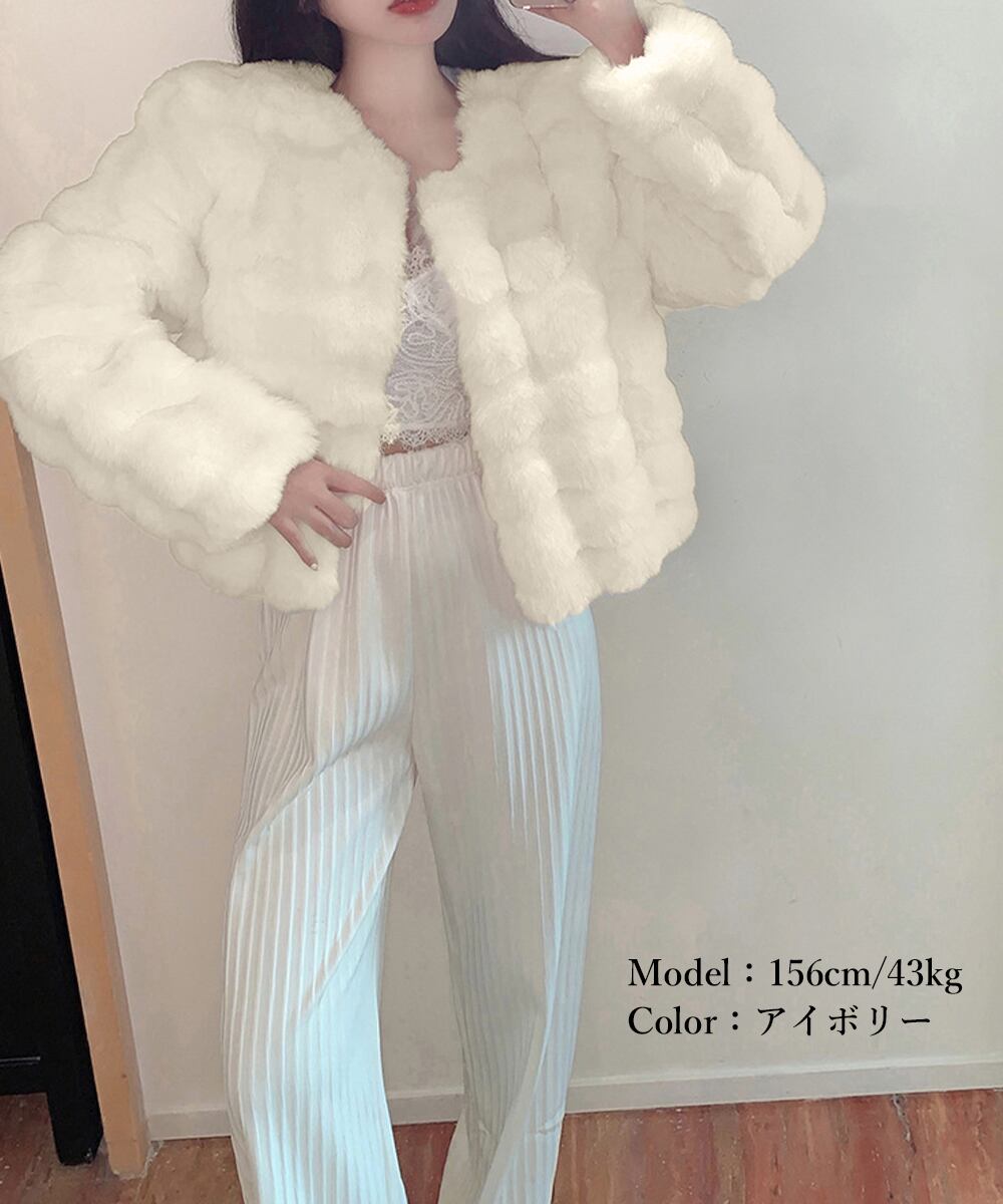 ふわふわとしたボリューム感のあるフェイクファーショートコートです。