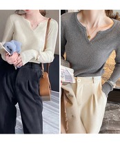 ニットプルオーバー リブニットおしゃれ 女性ニットソー無地