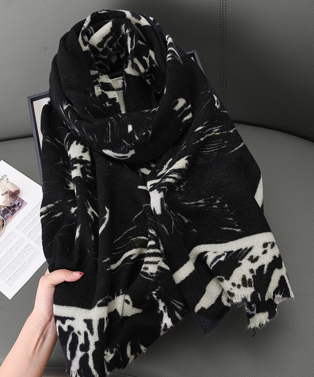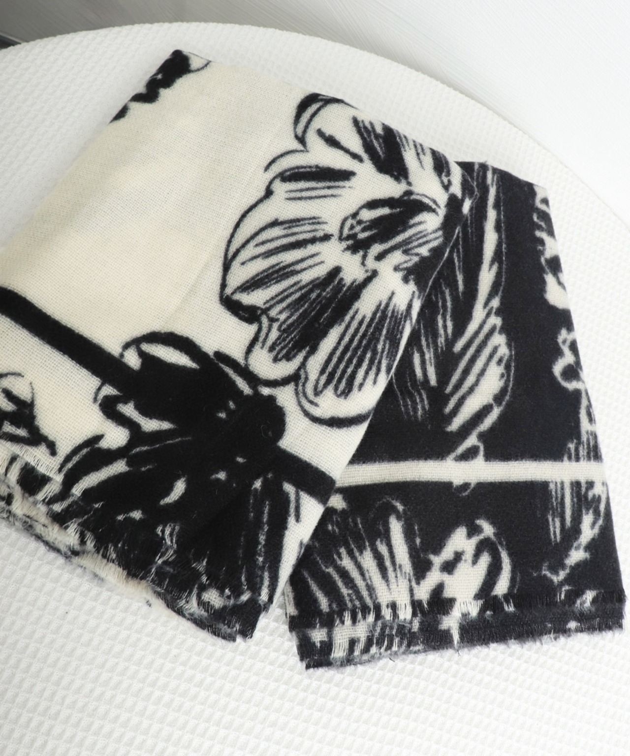 秋冬らしいベーシックなカラー展開、柔らかい素材感の花柄ストール。