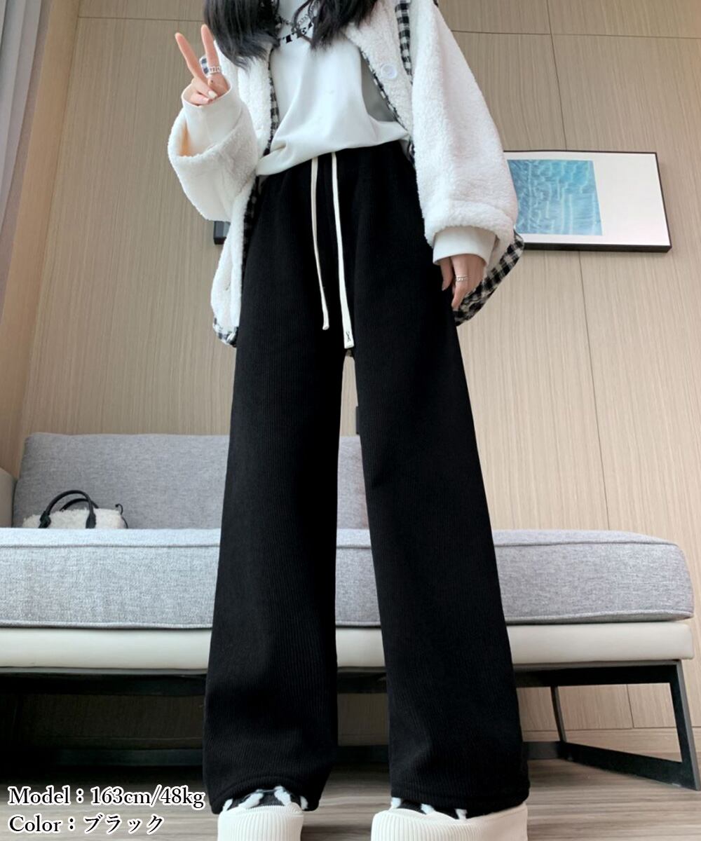 ワイドパンツ レディース ウエストゴム イージーパンツ  大人カジュアル 暖かい ロングパンツ 脚長見せ 韓国風ボトムス