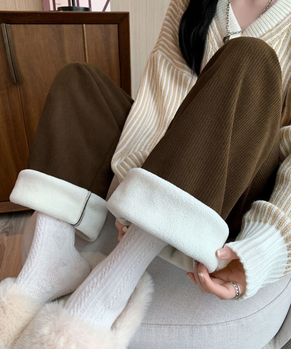裏起毛の暖かいコーデュロイのワイドパンツ。