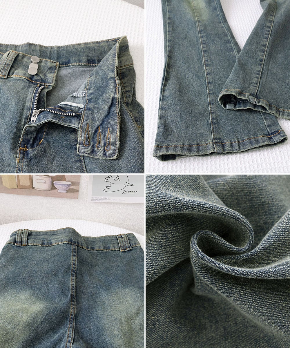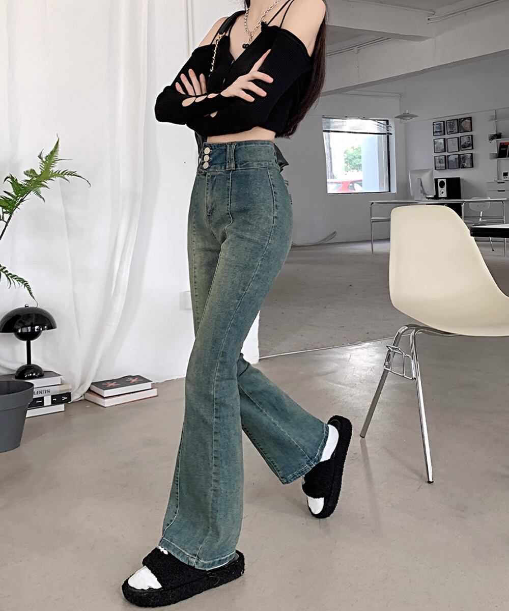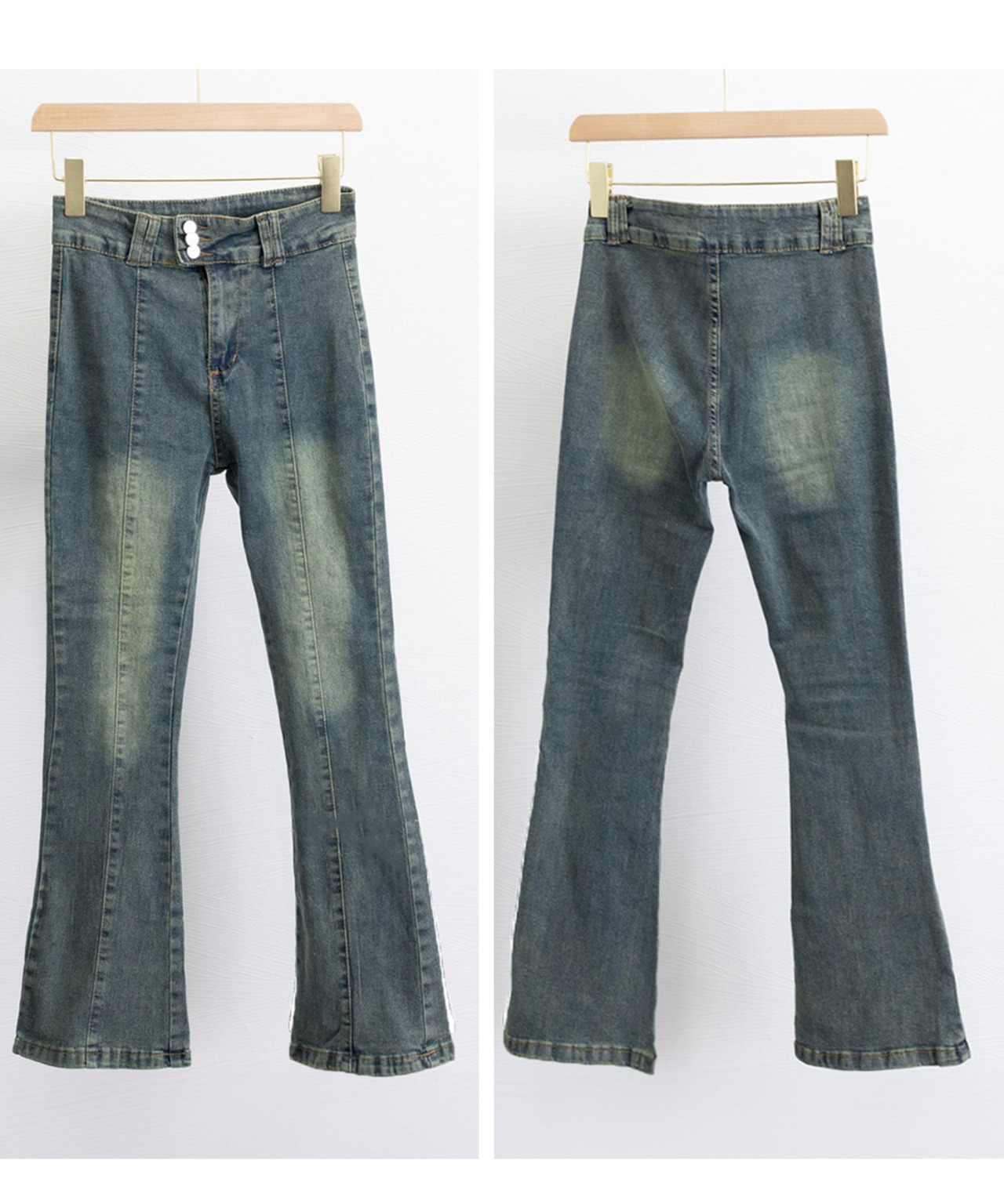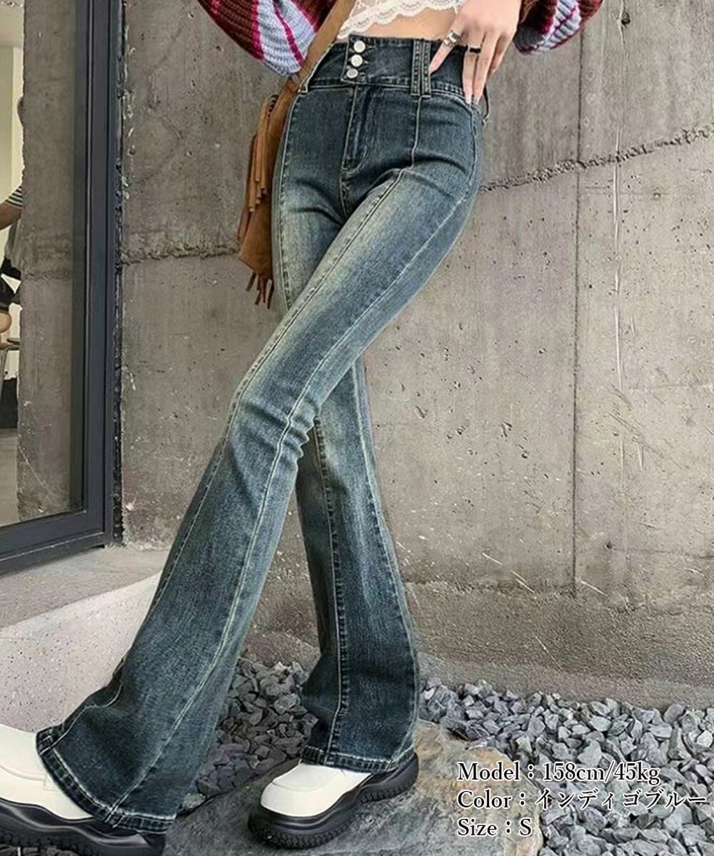 ジーパン ハイウエスト ヴィンテージパンツ 美脚脚長 ブーツカットデニム カジュアル 着やせ フロントラインロングパンツ