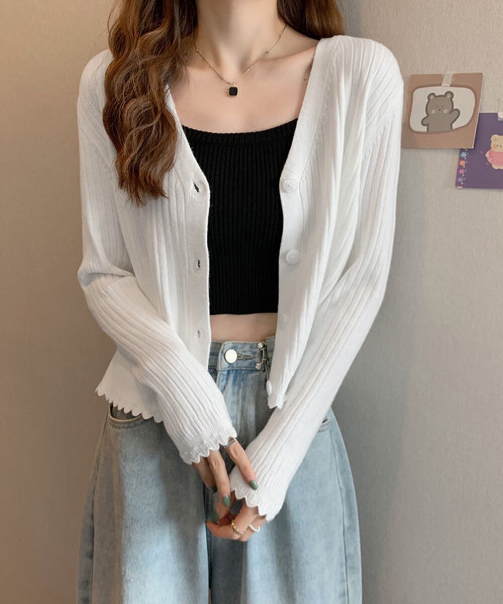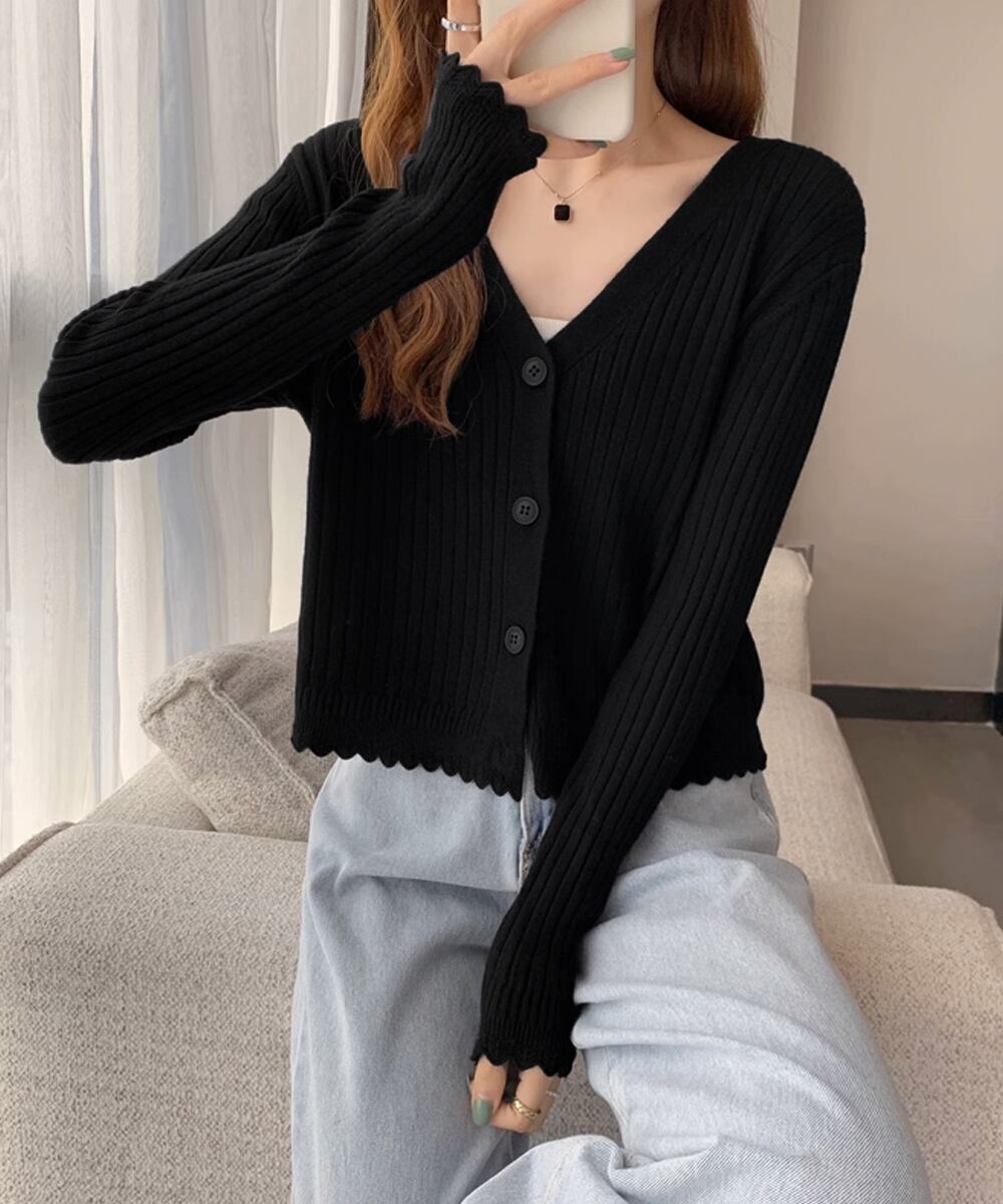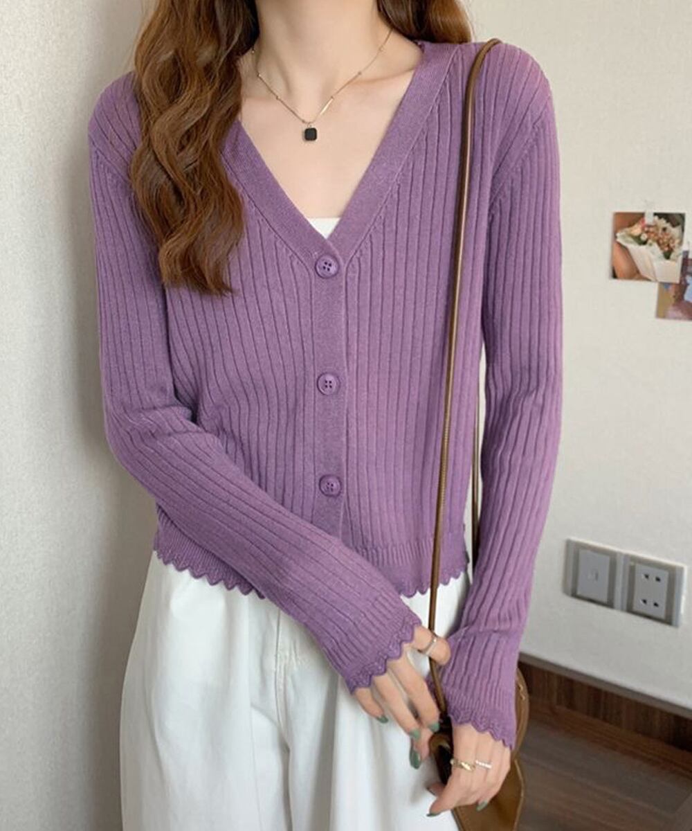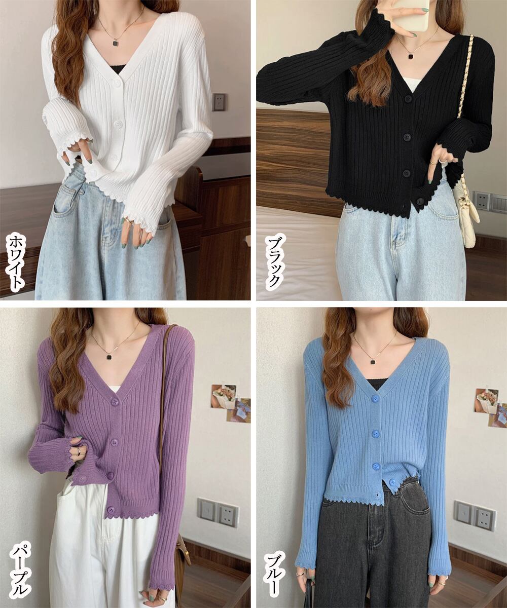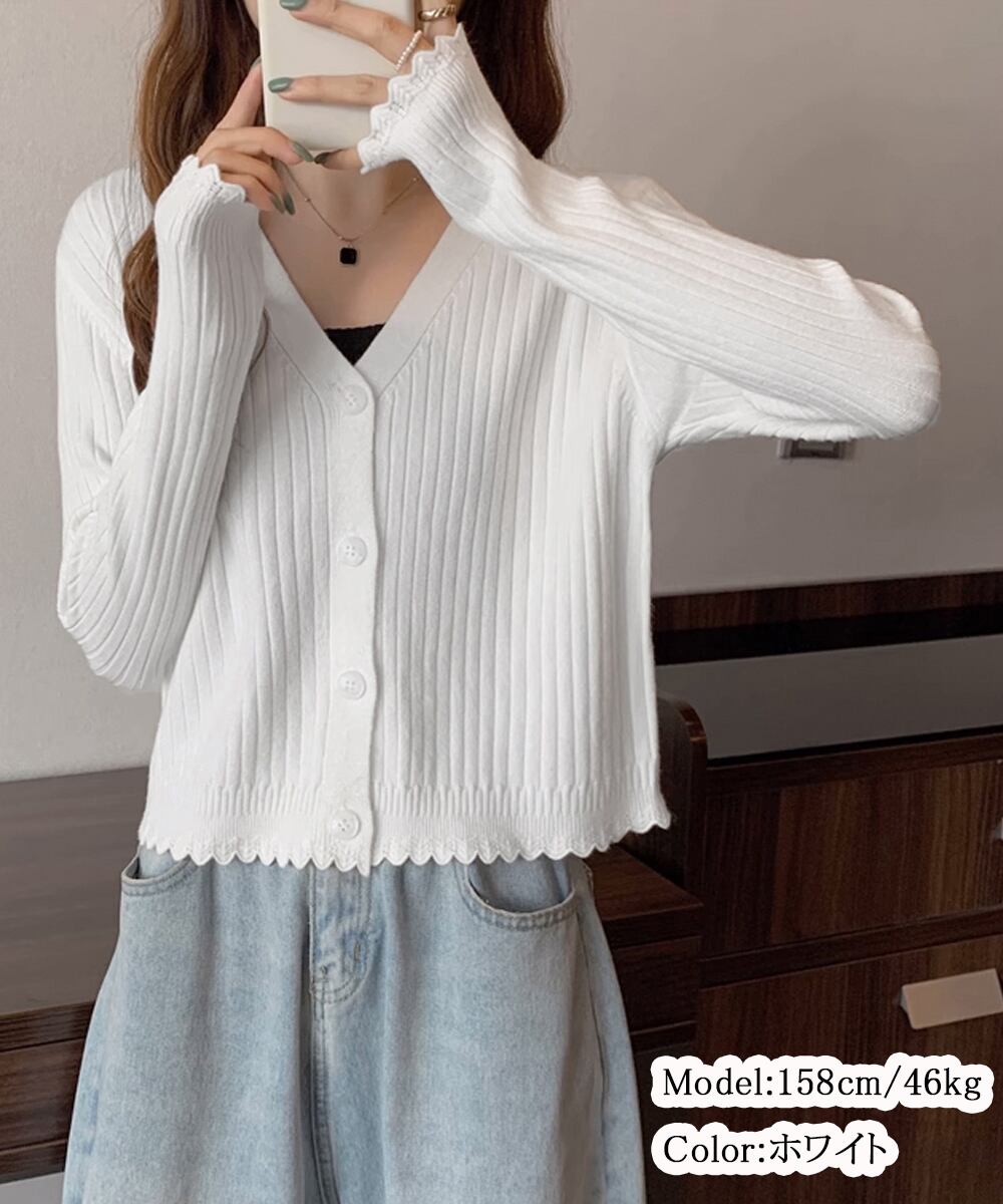 リブショートカーデ Vネック  長袖 きれいめ お出かけ アウター ショート丈 かわいい 大人カジュアル 通学 20代