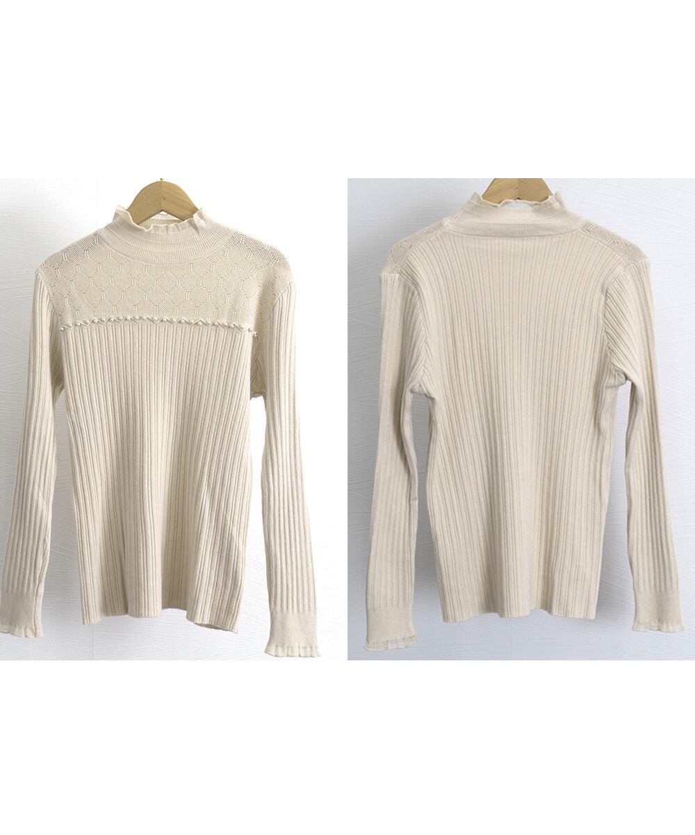 ハイネックニットトップスフリルニットソー