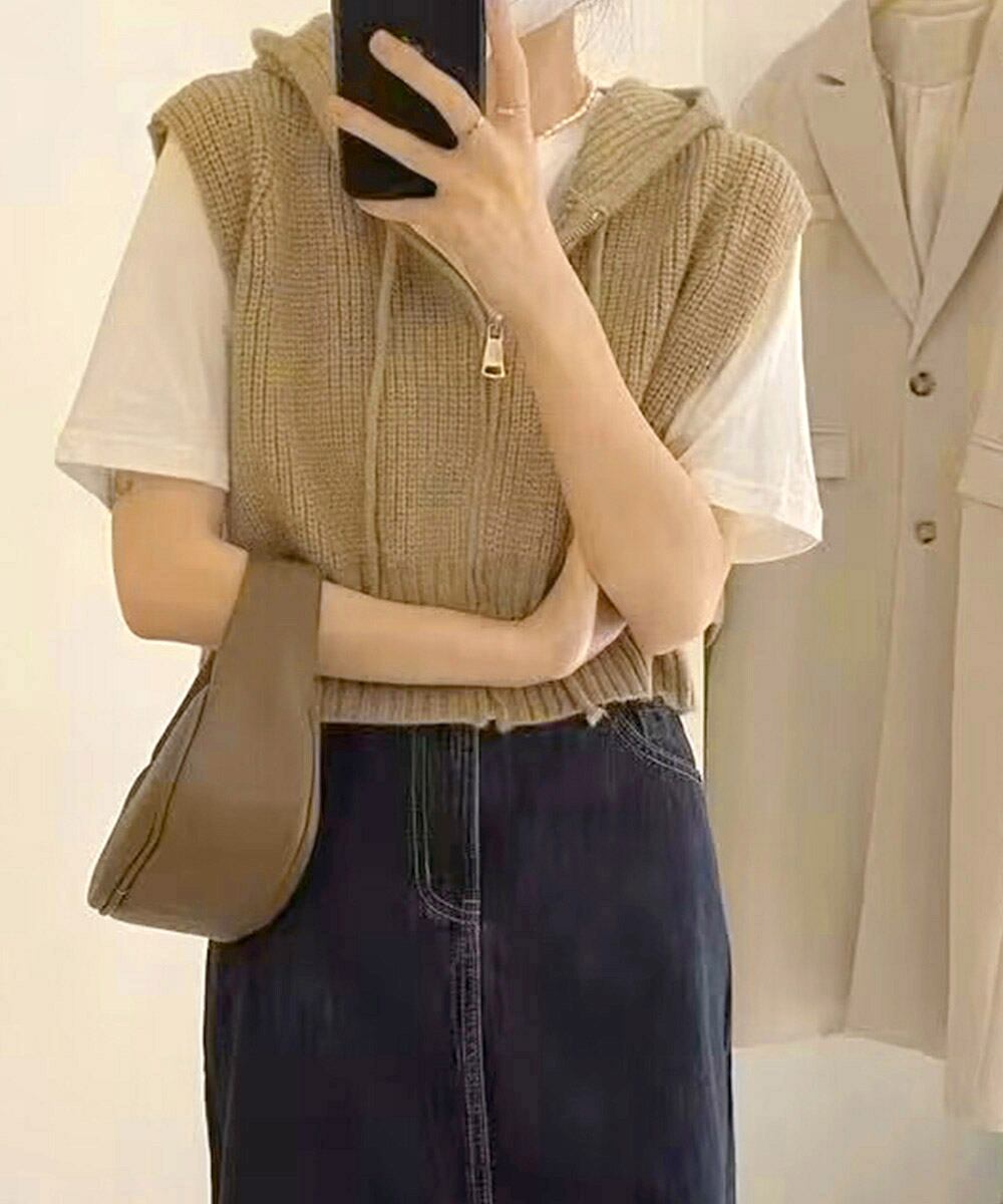 ジップアップ式のフーディデザインがデイリーに活躍するニットベスト