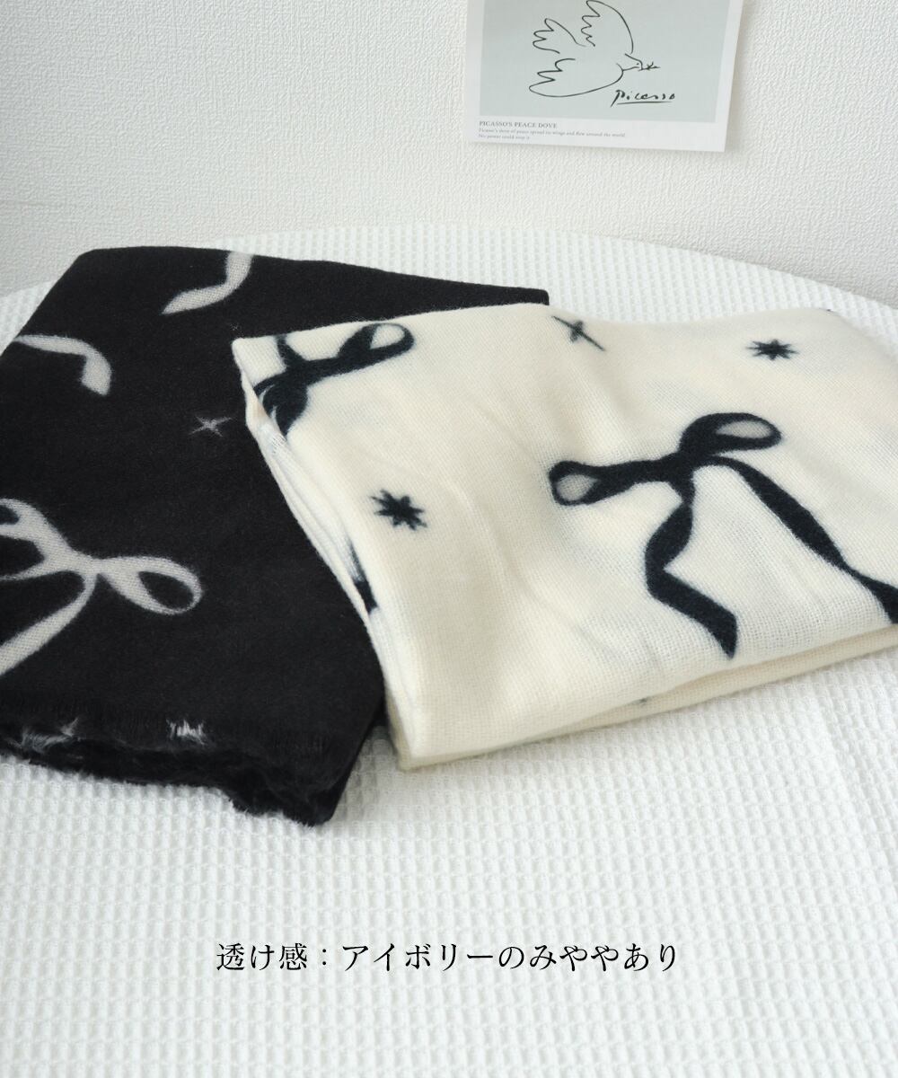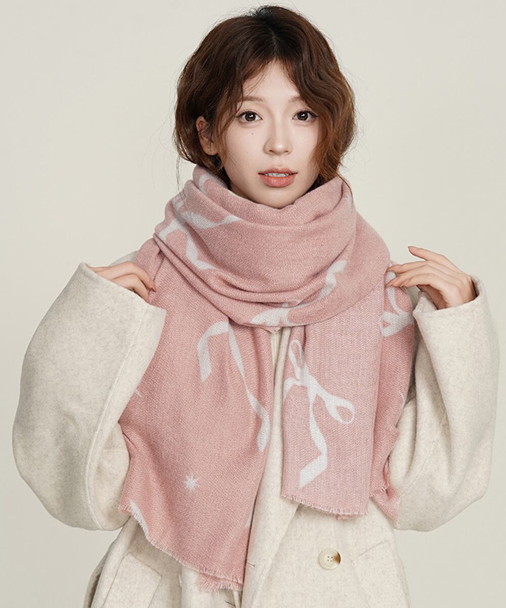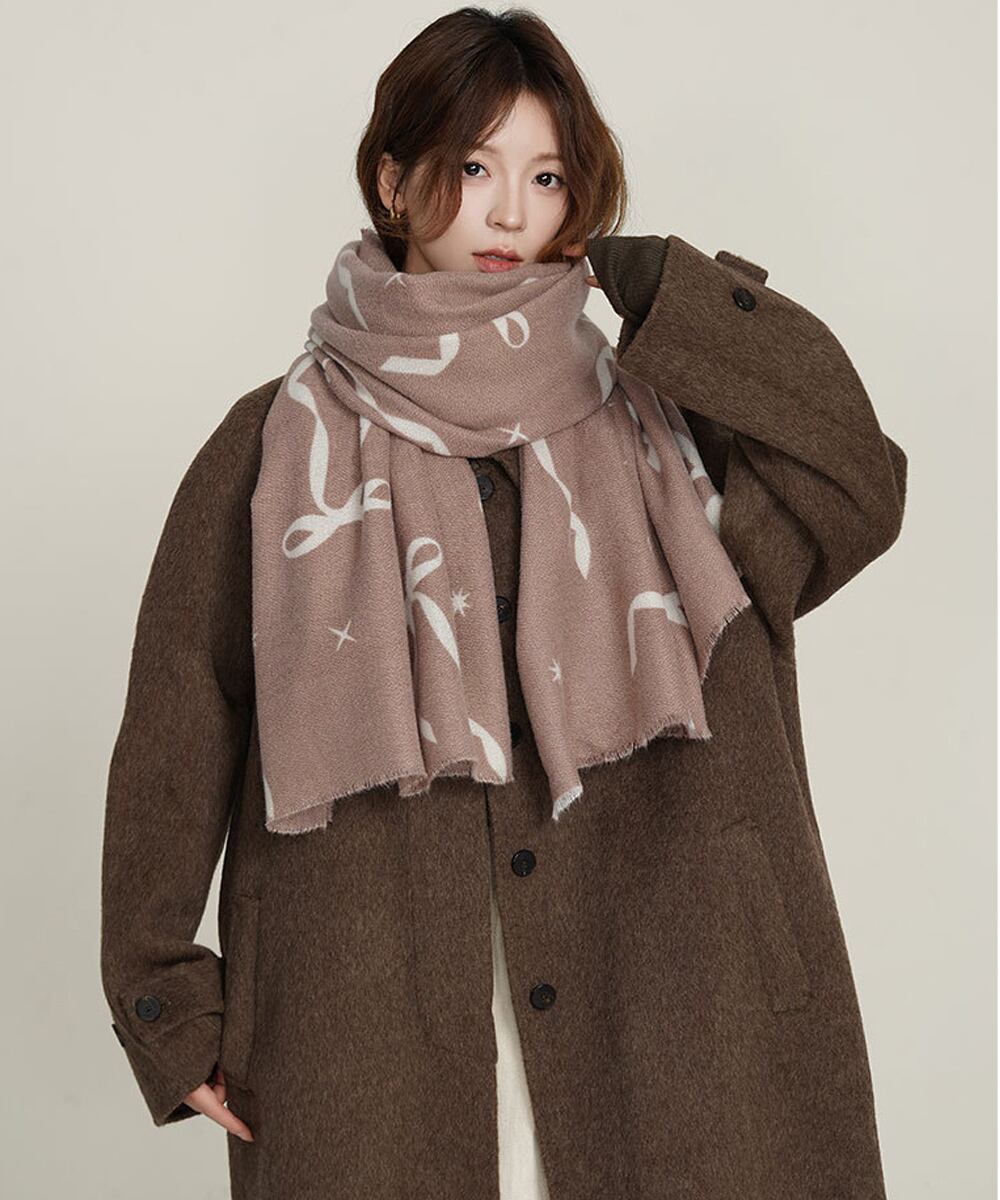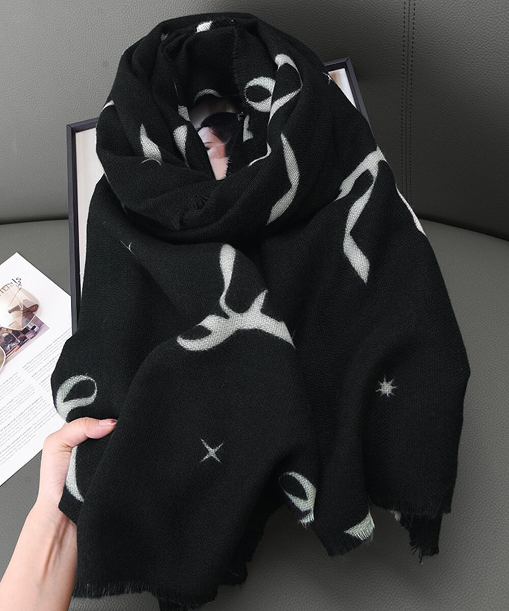 大判マフラー ストール リボン模様 秋冬