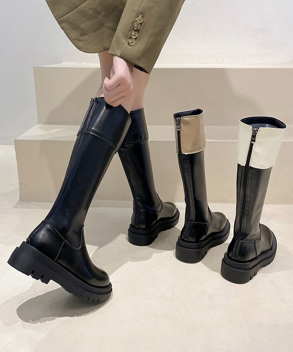 レディース ニーハイブーツ おしゃれ 太ヒールブーツ カジュアル 大人秋冬靴 膝下 履きやすい バックジップ 人気くつ