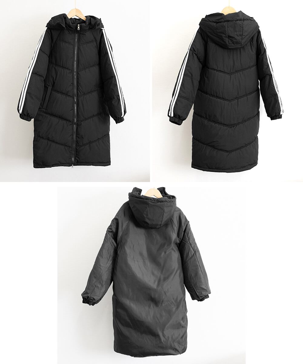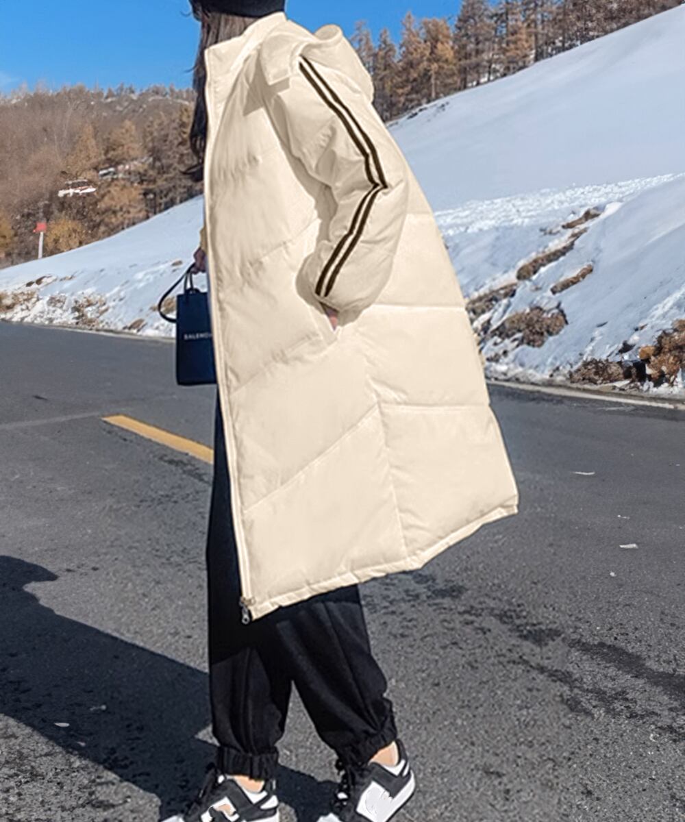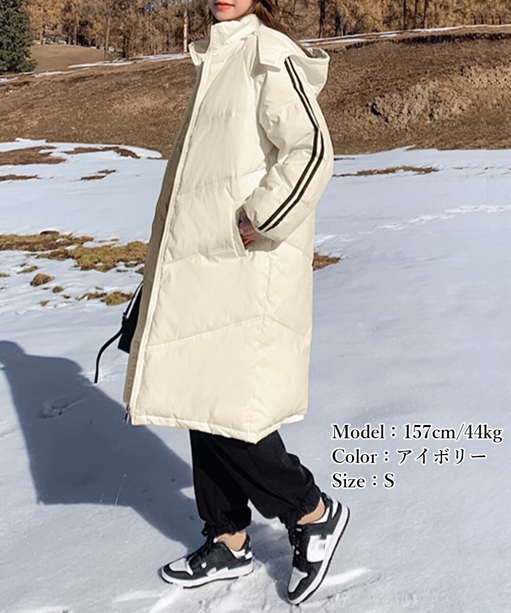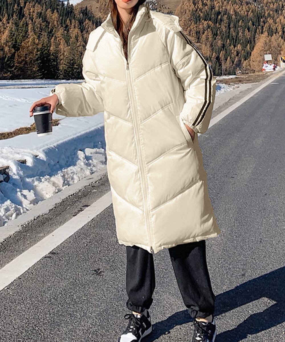フード付きコート冬服 エコダウンロング丈ジャケット 袖ラインキルティングコート 軽量ベンチコート暖かい 通勤通学アウター