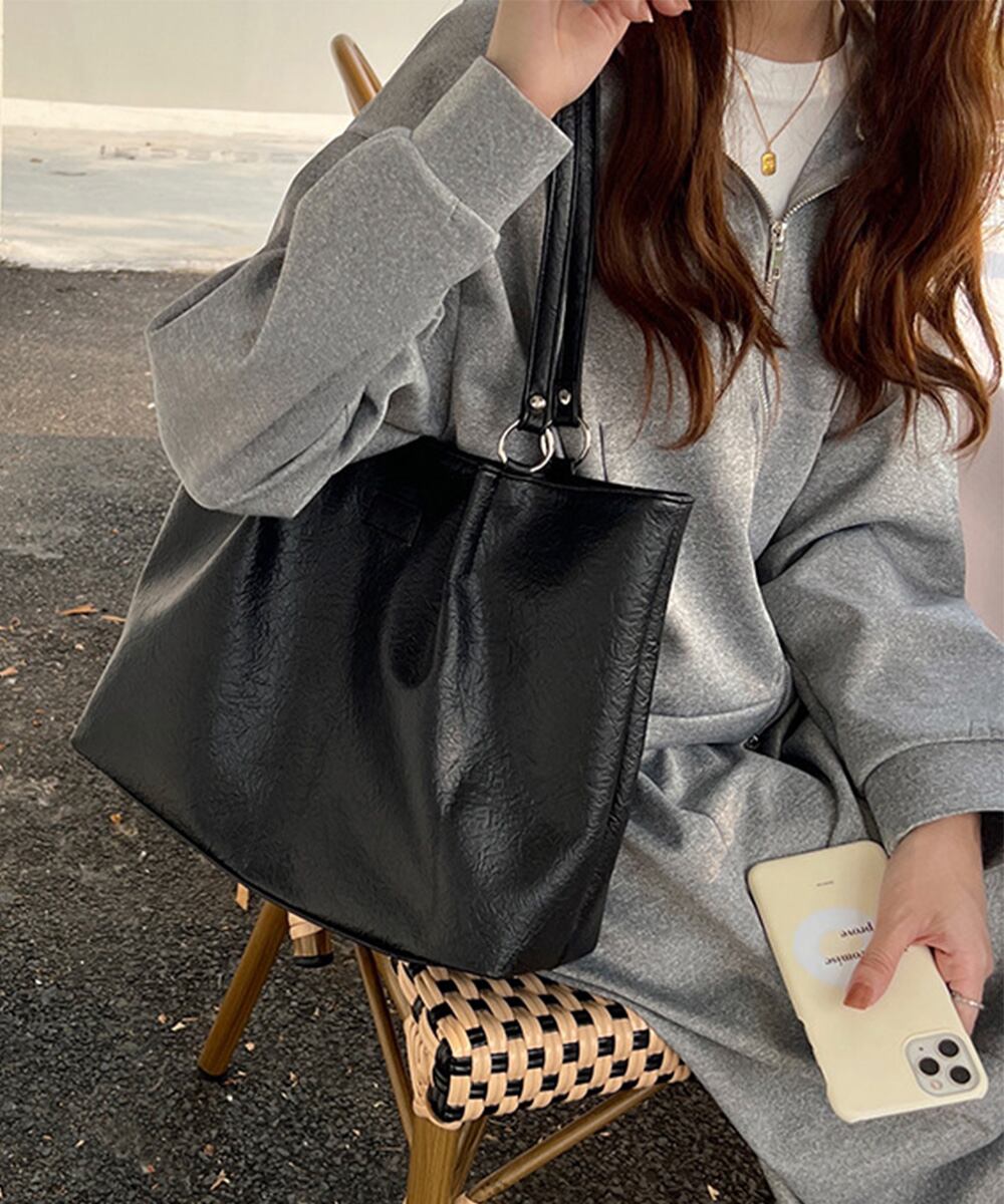 ハンドバッグ 合皮 大きめ 無地 a4対応 シンプル カジュアル 大人 オフィス 通勤通学 韓国ファッション鞄