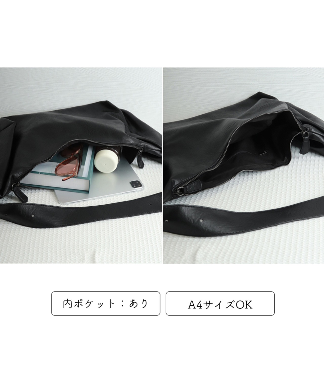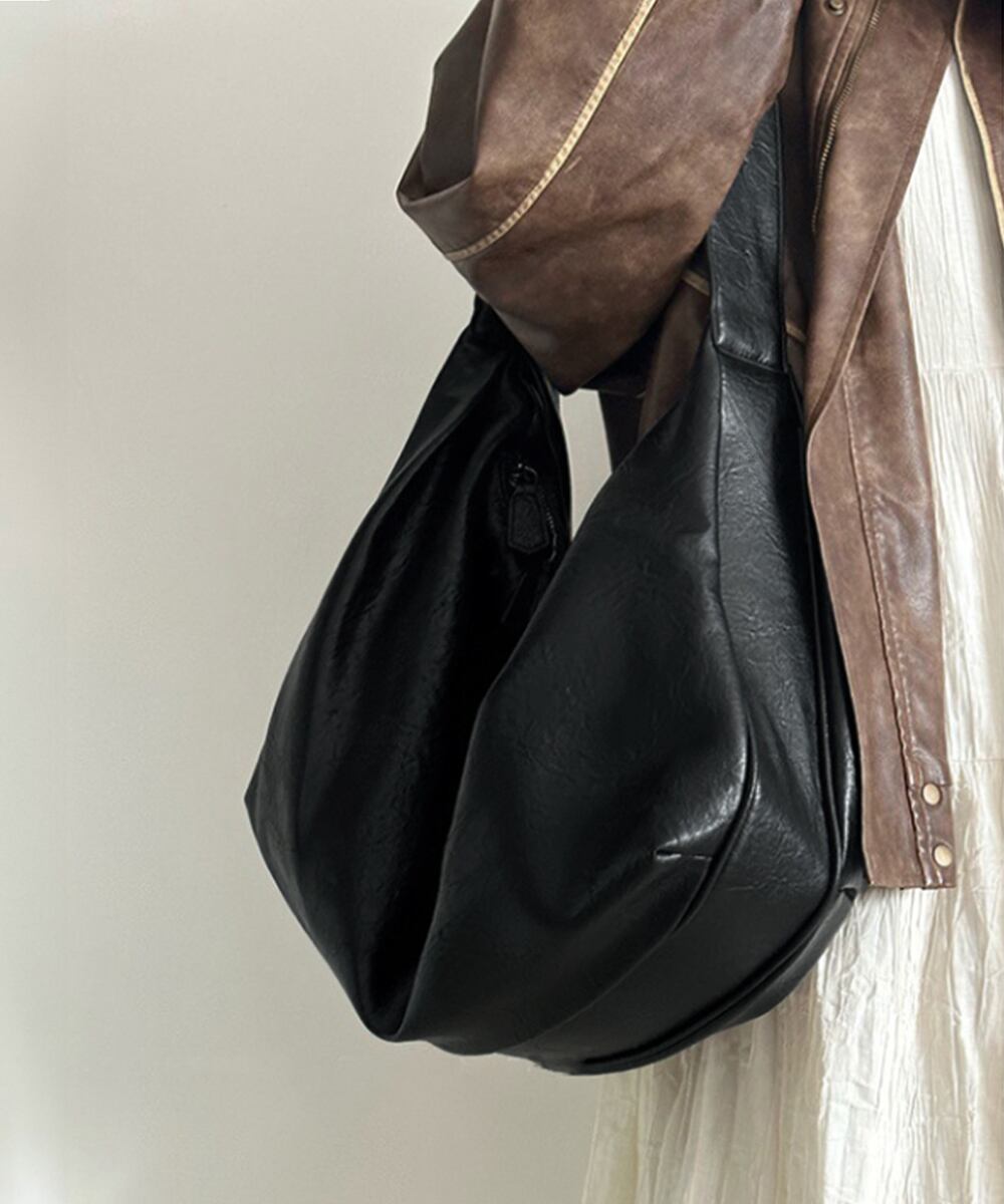 くったりとした風合いのフェイクレザーを使用しているので、持ったときに身体に馴染みやすく、デイリー使いにぴったり。