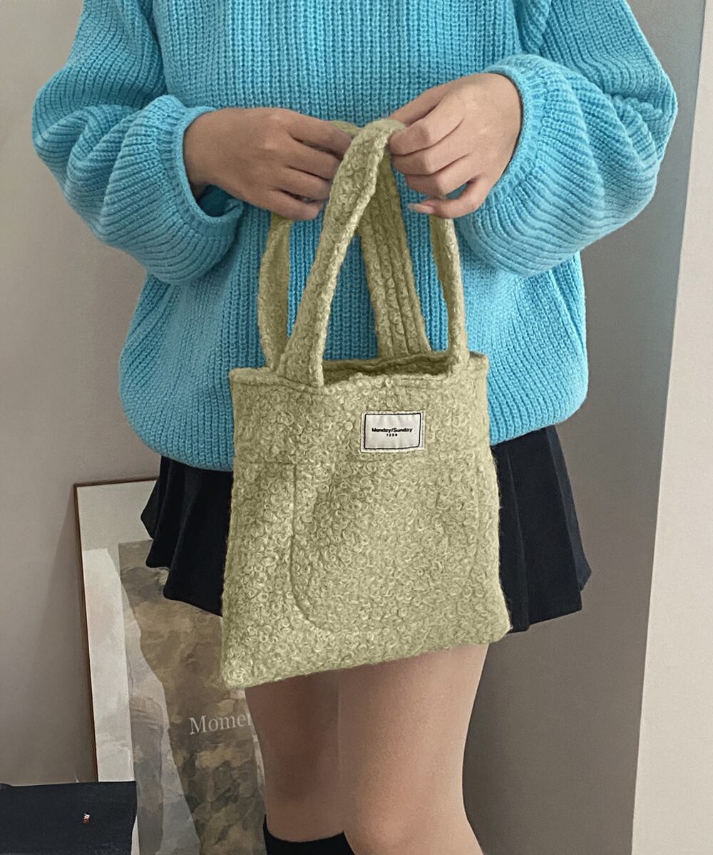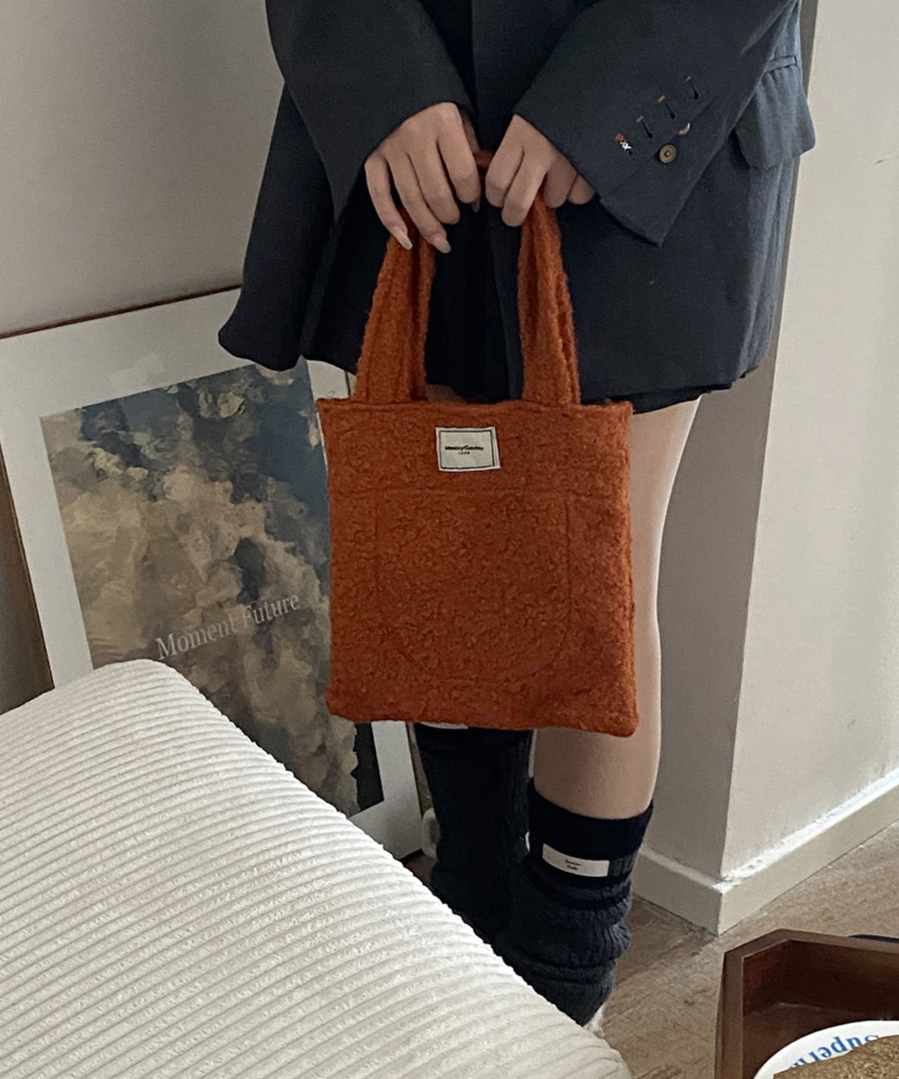 ボアトートバッグ ミニ 無地 軽量 秋冬