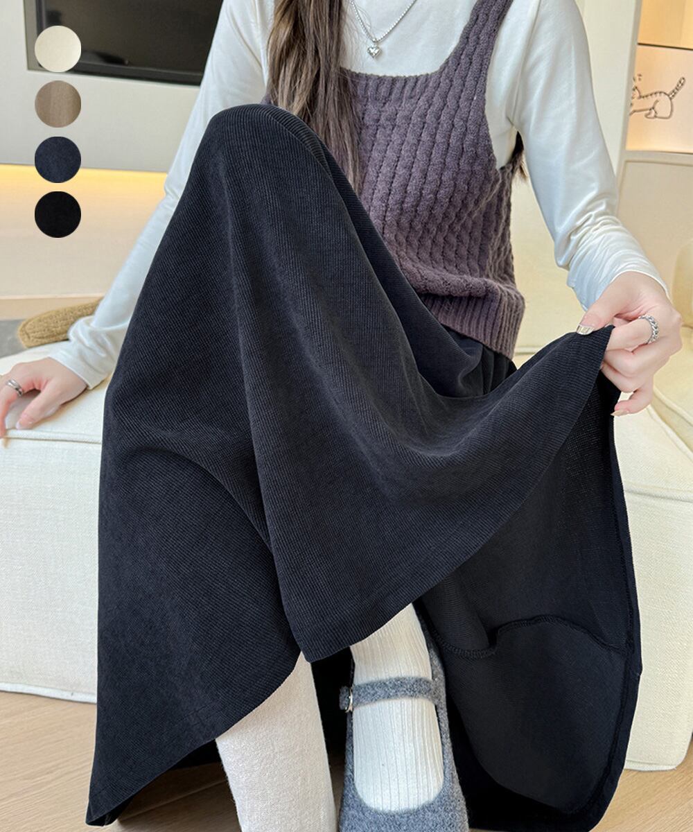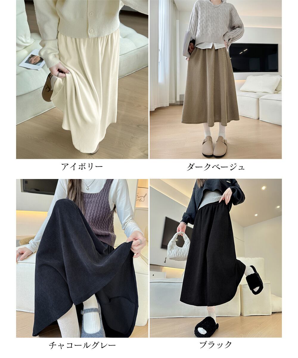 レディース 秋冬 ハイウエスト 膝下丈 リラックススカート 無地 きれいめ 大人可愛い オフィスカジュアル 通勤通学