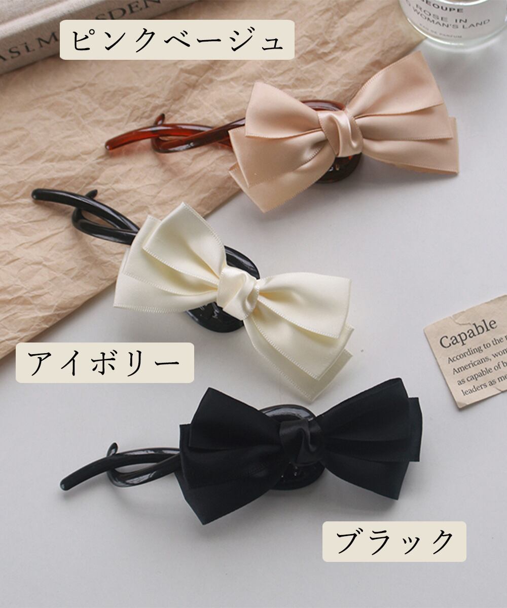 バナナクリップ リボン ヘアクリップ 黒