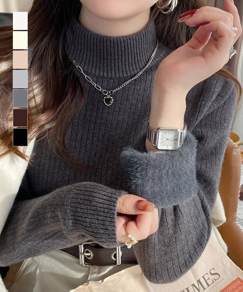 全7色展開、もこもこふんわり裏起毛のハイネックニット。