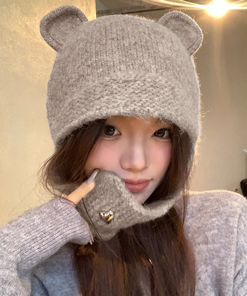 リブ編み ハートボタン 小顔 秋冬 あったか 折りたたみ カジュアル おしゃれ 可愛い 人気 お出掛け 保温防寒