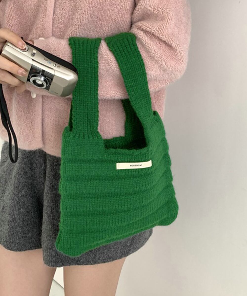 ミニハンドバッグ 英字ロゴ ニットバッグ