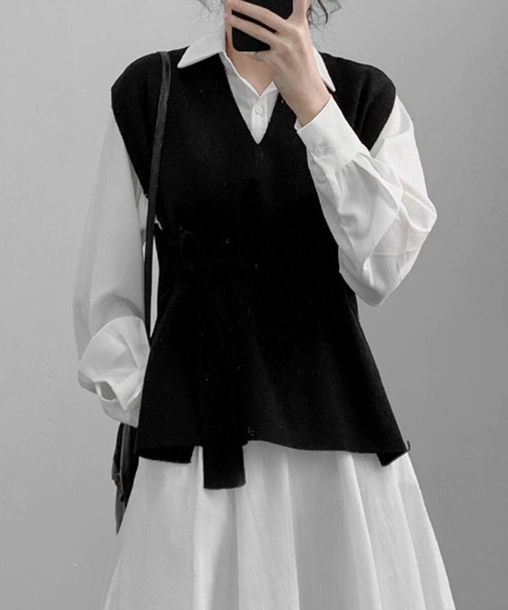 レイヤードに欠かせないマストアイテムであるニットベスト