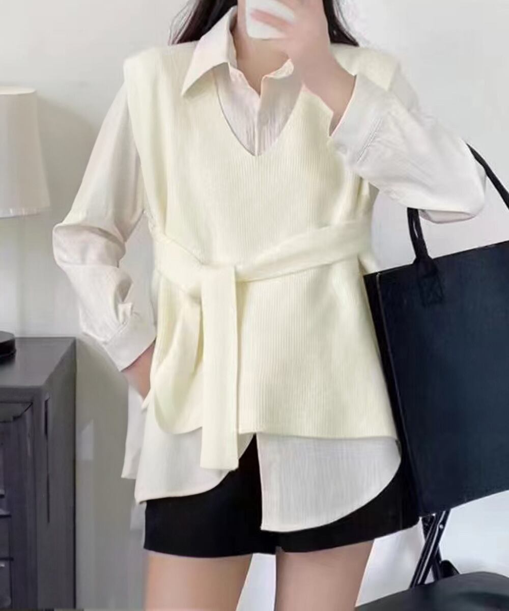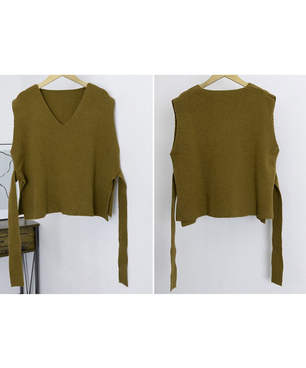 韓国風ニットチョッキレディース ノースリーブニットトップス 大人重ね着風ベスト 体型カバープルオーバー フレンチスリーブ