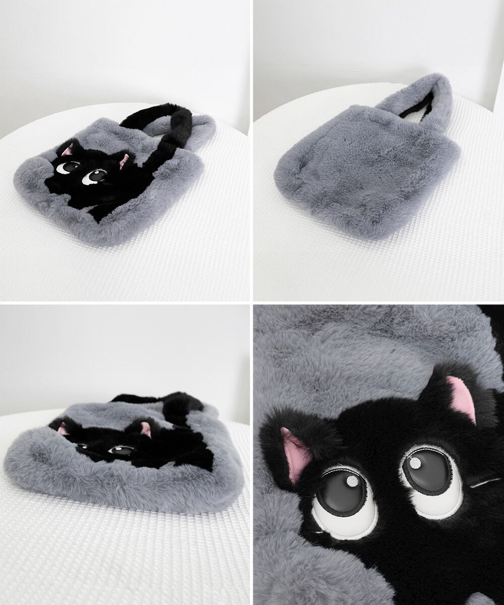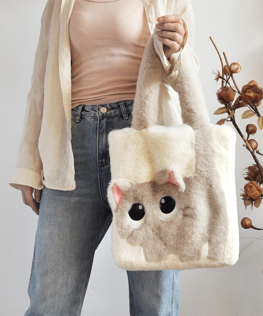 ファートートバッグ ふわふわ 猫柄鞄秋冬