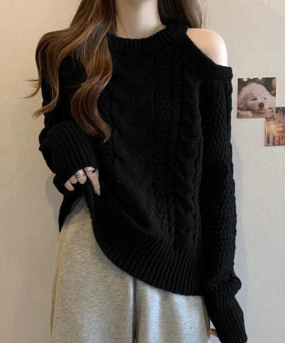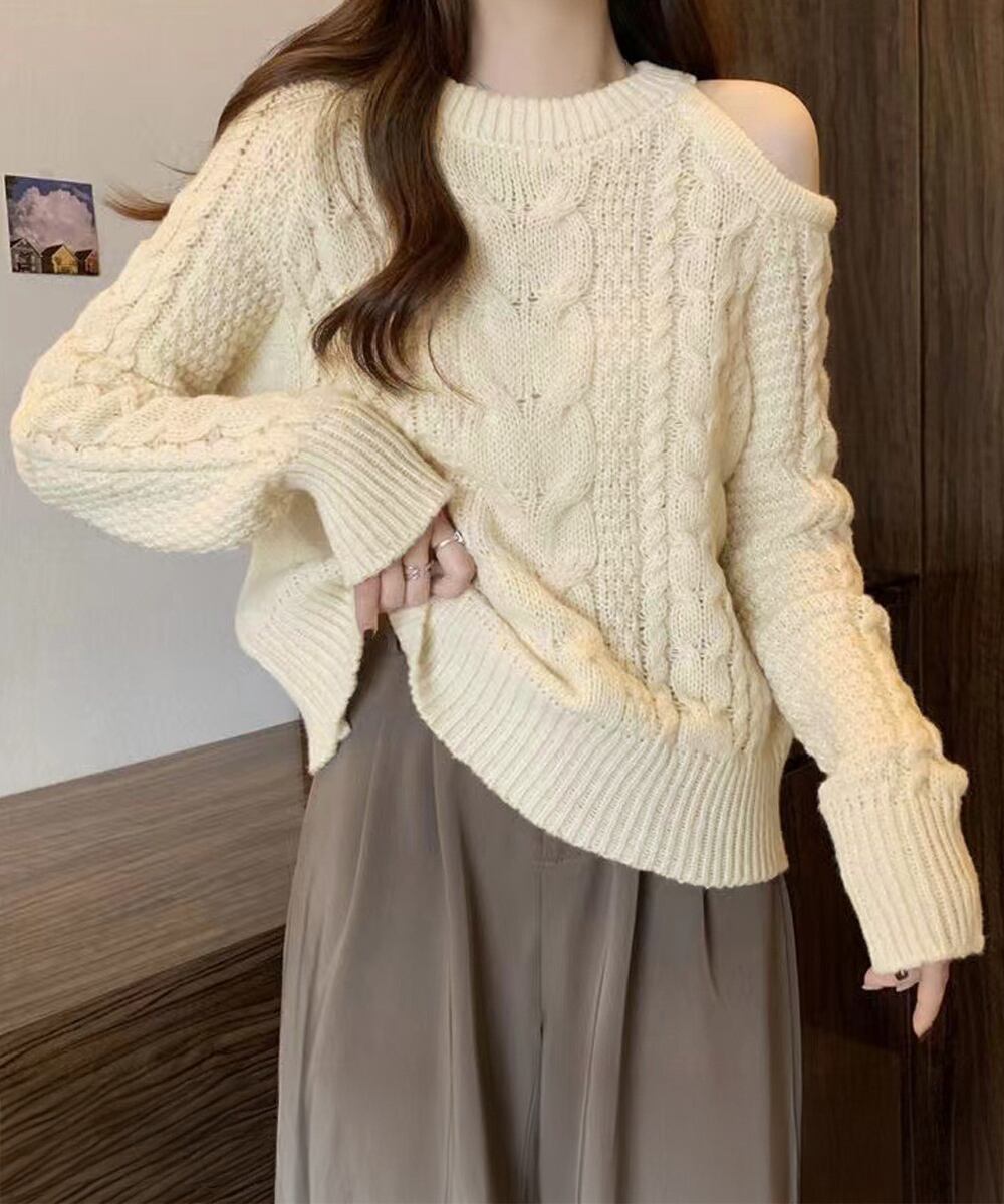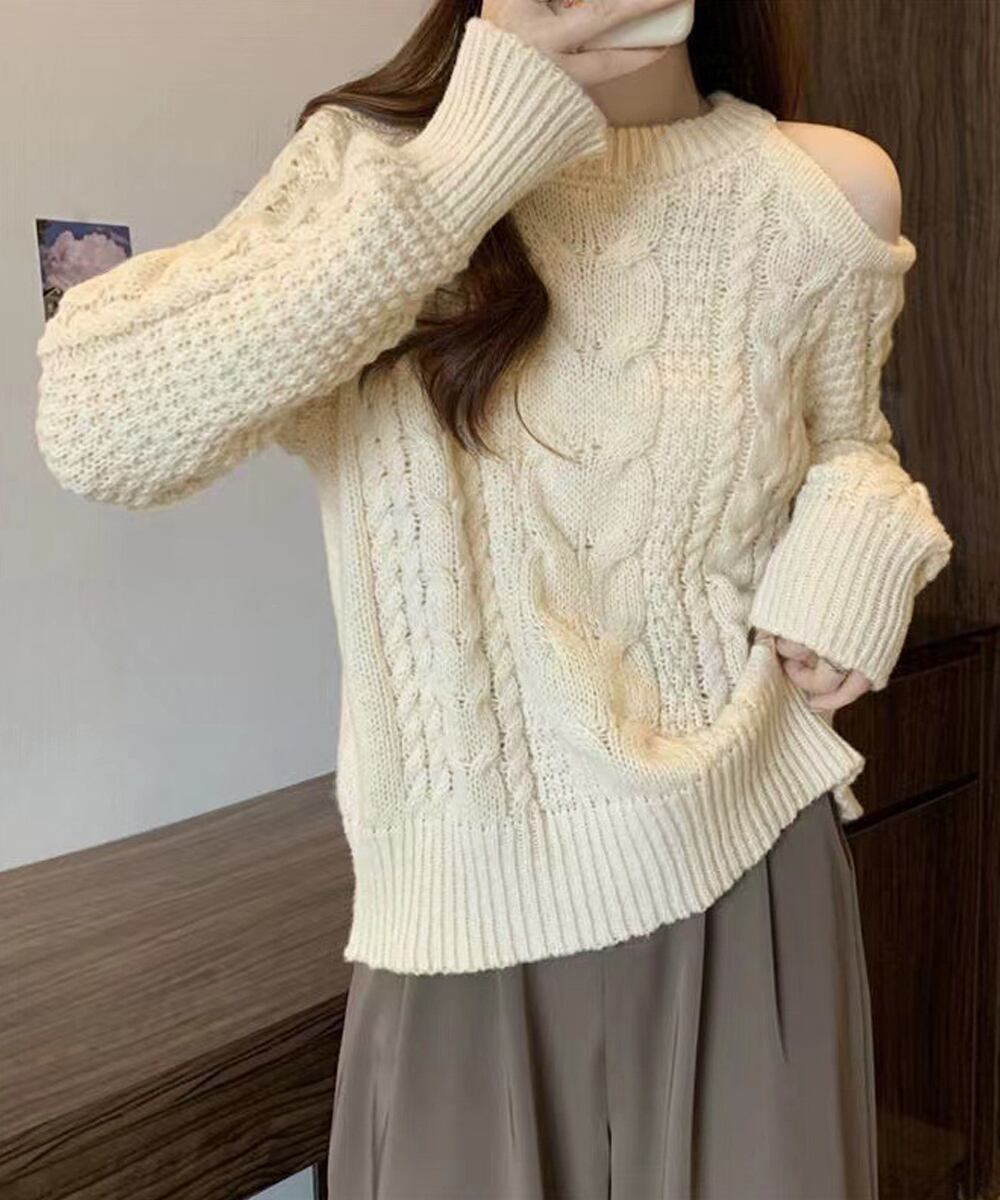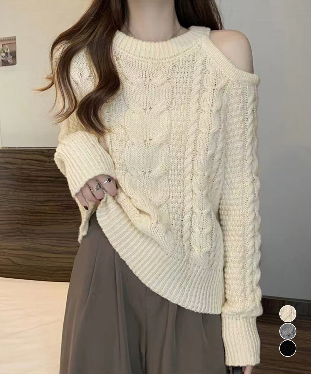 レディース 肩見せ ニットプルオーバー 肩出し ニットセーター オープンニット カットアウトニット秋冬 無地 大人可愛い