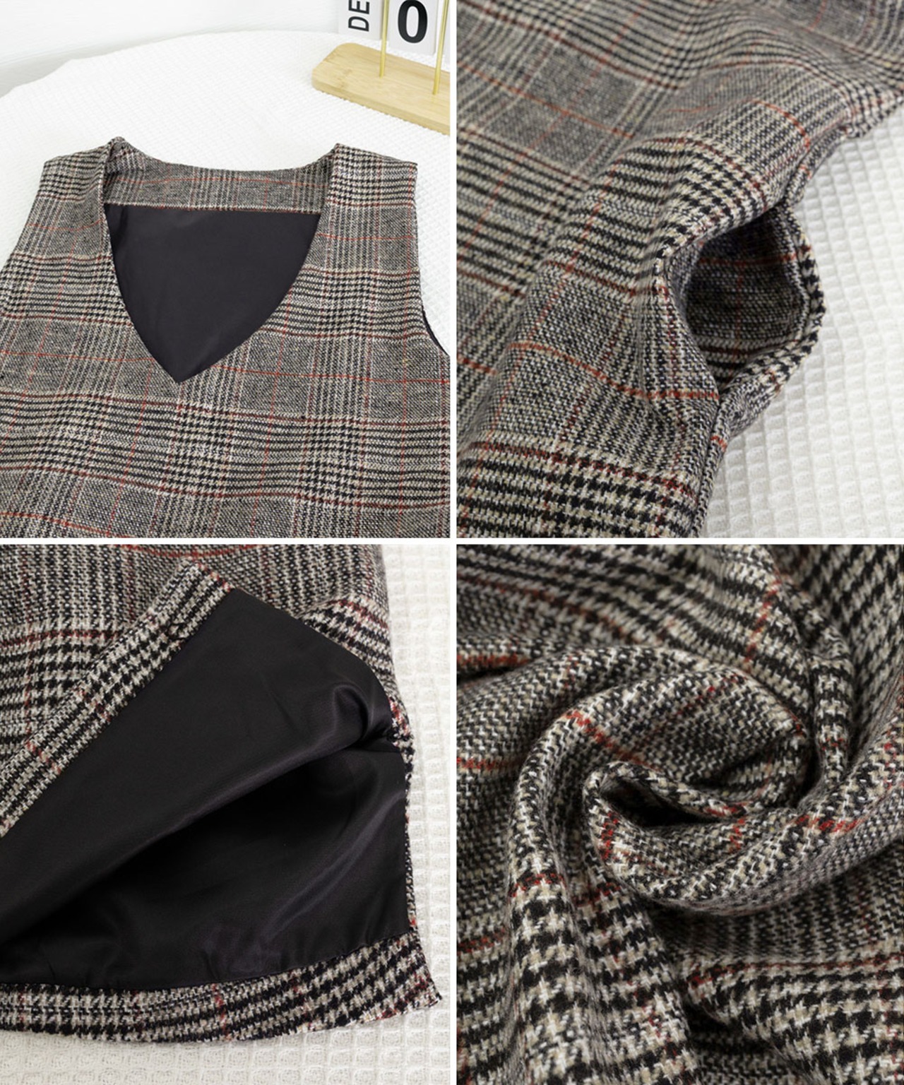 Vネックでゆったりとしたシルエットが魅力のストレートチェック柄ジャンパースカート