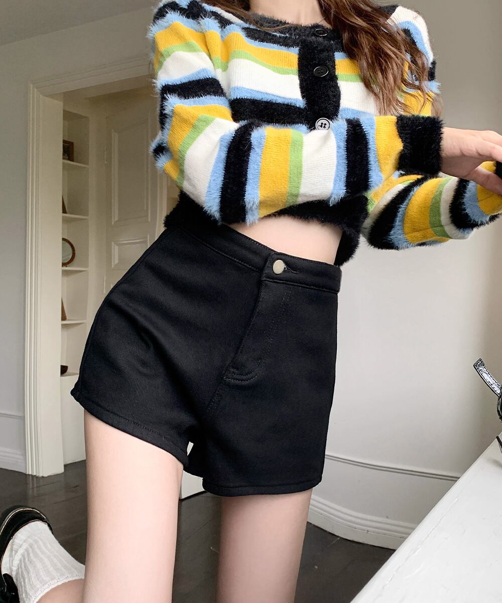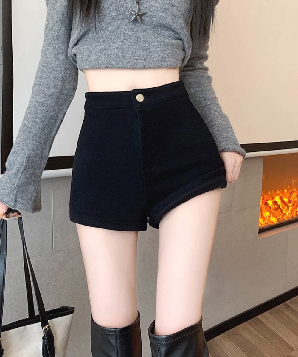ハイウエスト 暖かい短パン セクシー ホットパンツ スリムミニ丈パンツ 美脚脚長 タイトボトムス 着やせ オシャレ秋冬服