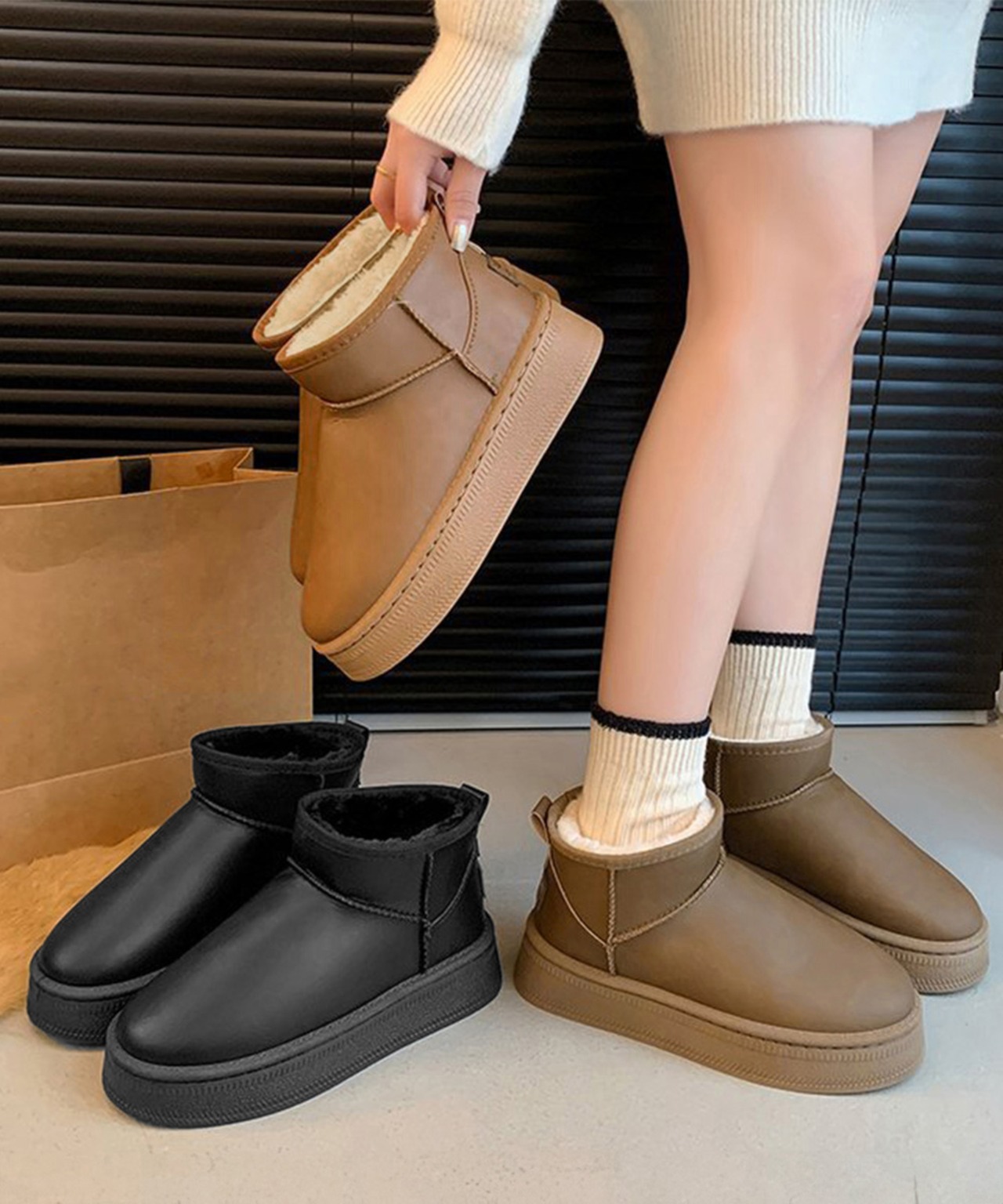 防寒ブーツもこもこ ボアシューズ 保温 美脚 モカシン厚底