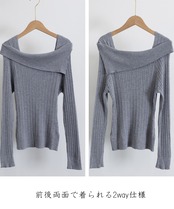 リブニットトップス オフショルダー 長袖