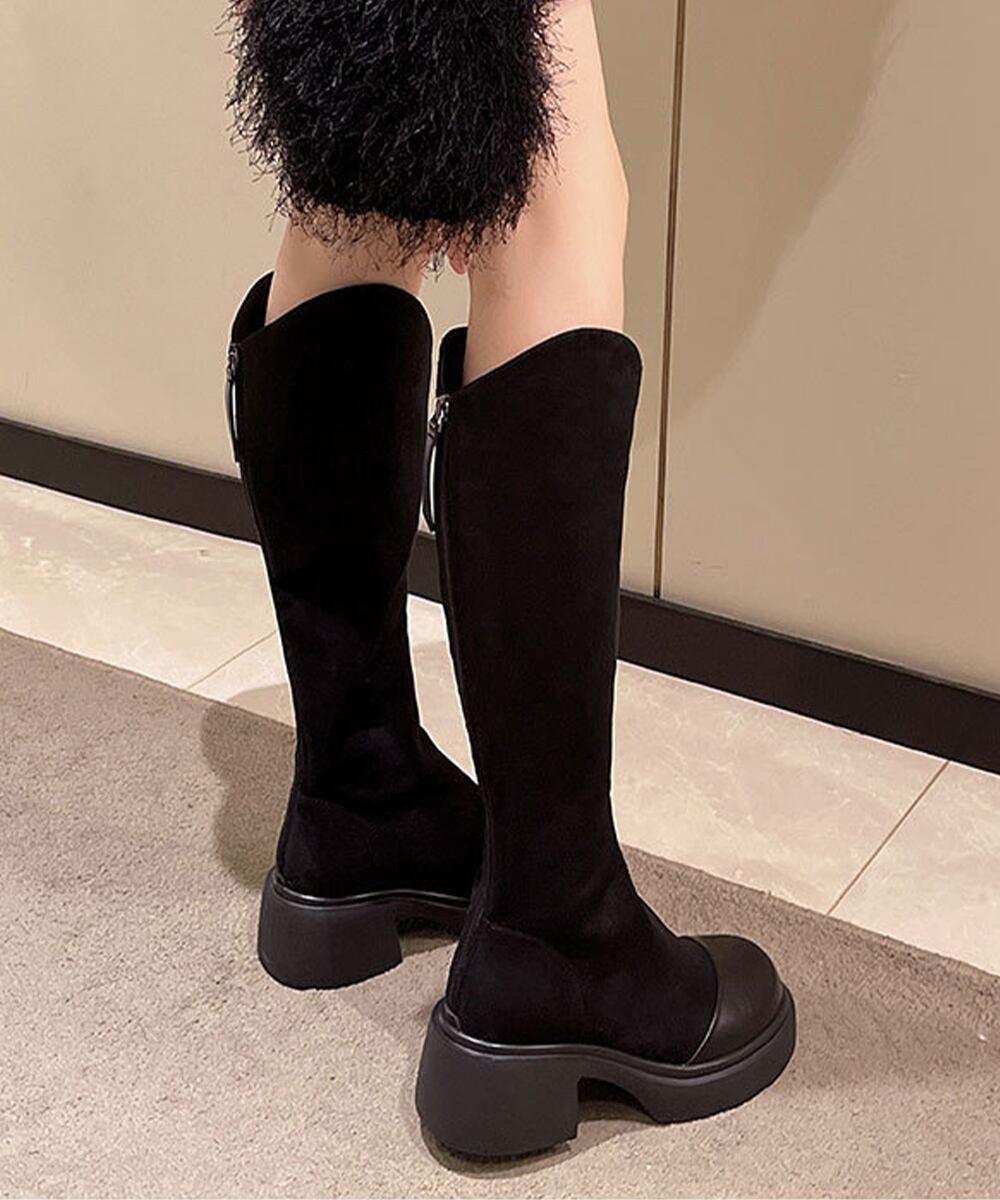 ジョッキーブーツ ジッパー付き チャンキーヒール 秋冬 膝下 オルチャン おしゃれ オフィスカジュアル 疲れにくい