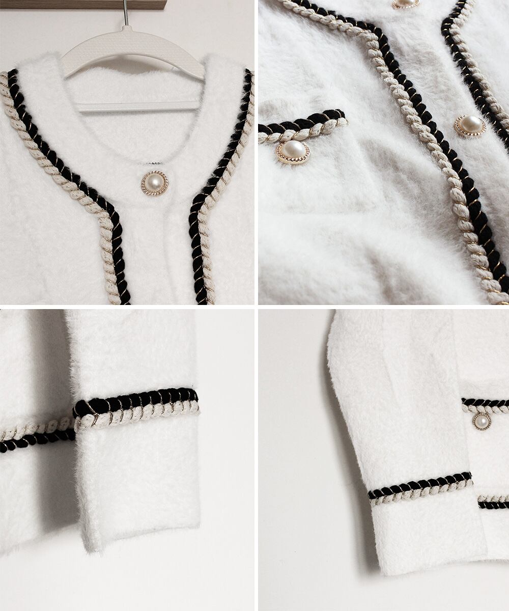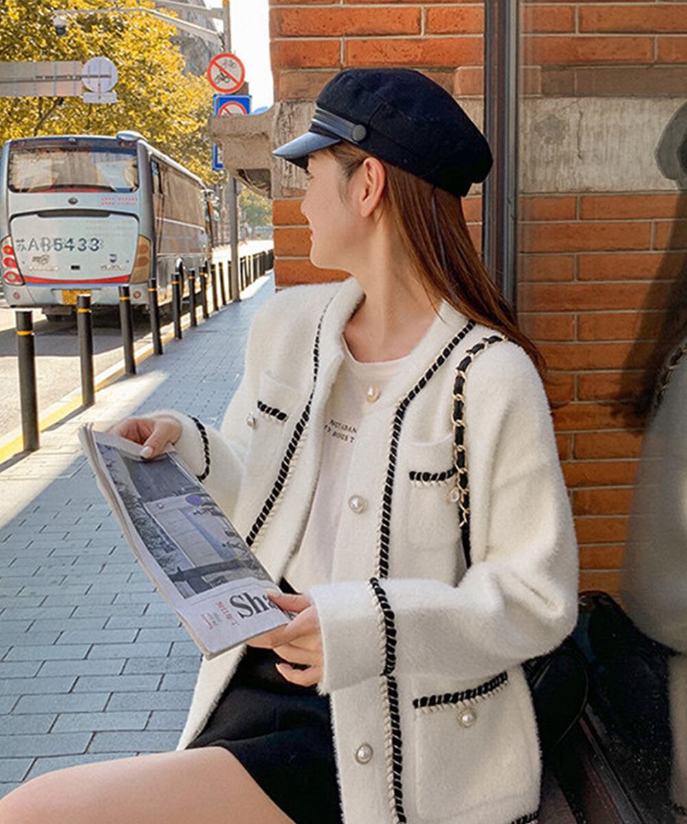 アクセントのパール風ボタンがモダンでイマドキ感たっぷり