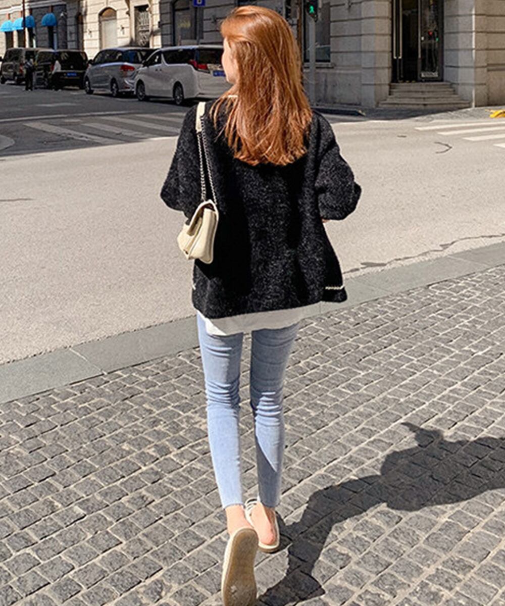 着やせニットお洒落 ボタン付き上着長袖 羽織 女性 高見え
