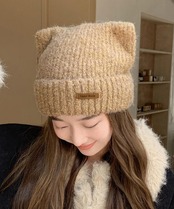 暖かいねこ耳帽子韓国風 秋冬帽子おしゃれ 小顔帽子 シンプル帽子無地 チクチクしない毛糸帽子 防風防寒グッズ プレゼント