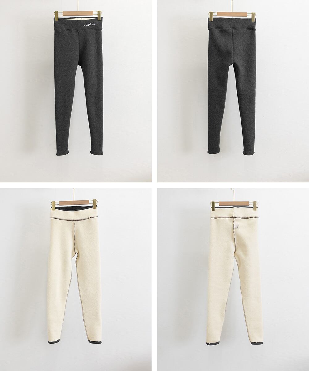 シンプルでおしゃれな刺しゅうロゴがアクセントに。カジュアルなスタイルにぴったりの裏起毛レギンス