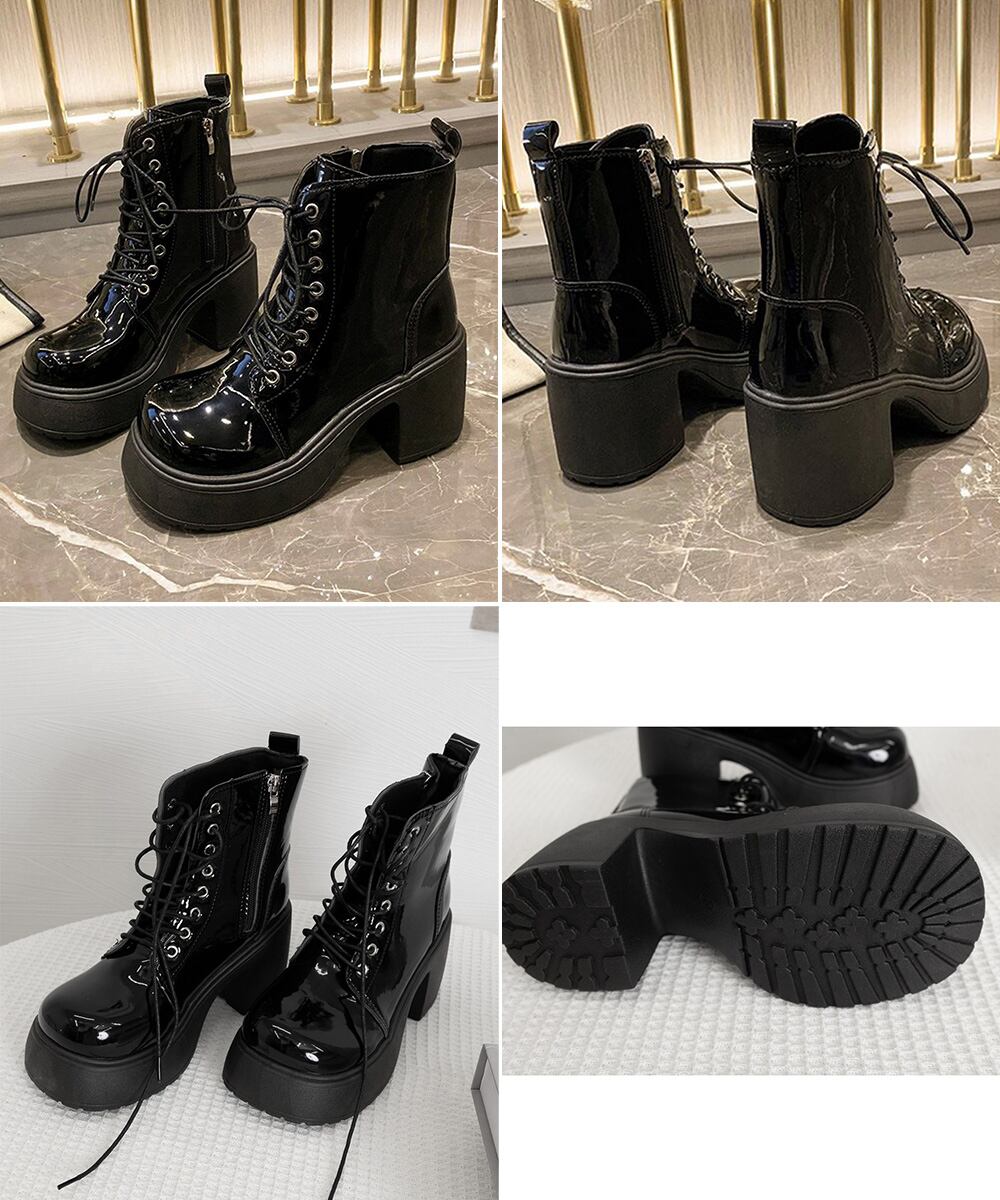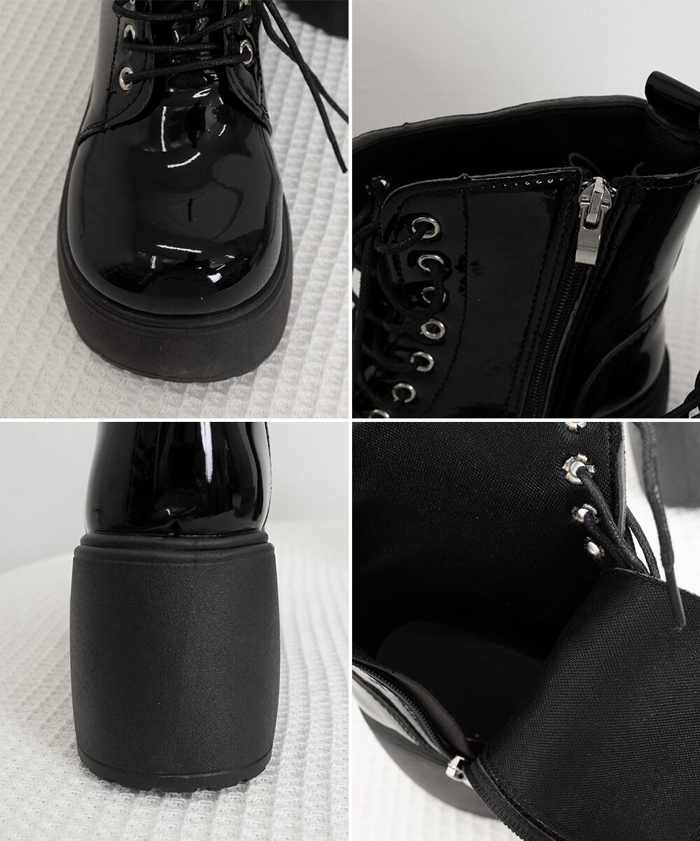レースアップデザインながら便利なファスナー付きで、脱ぎ履きがスムーズ。