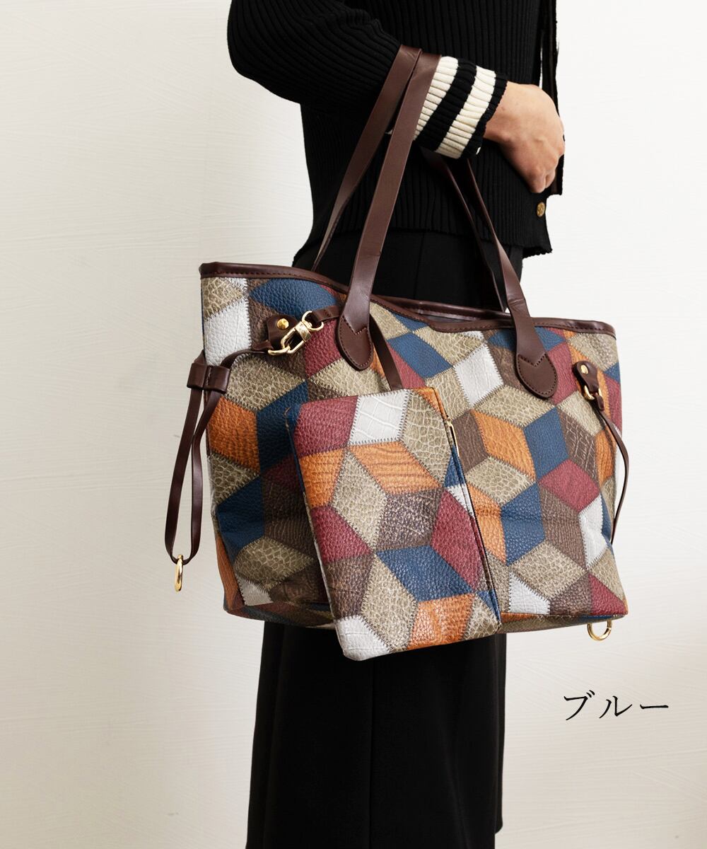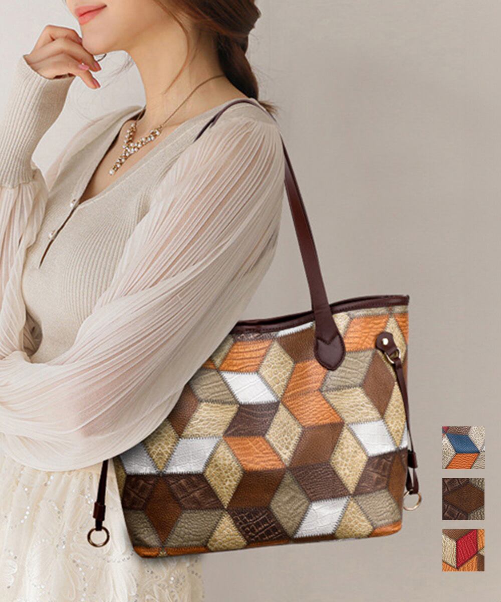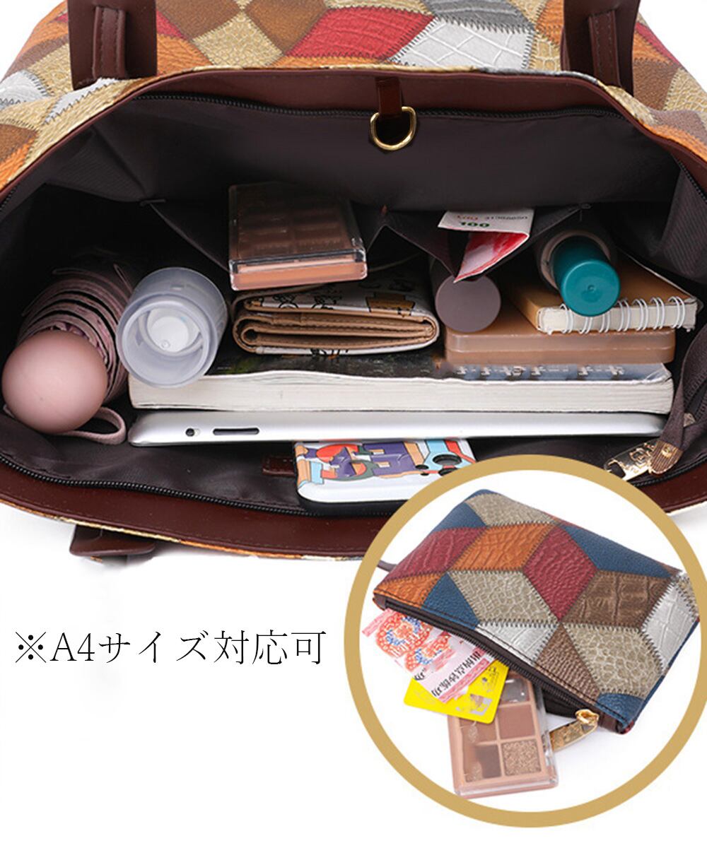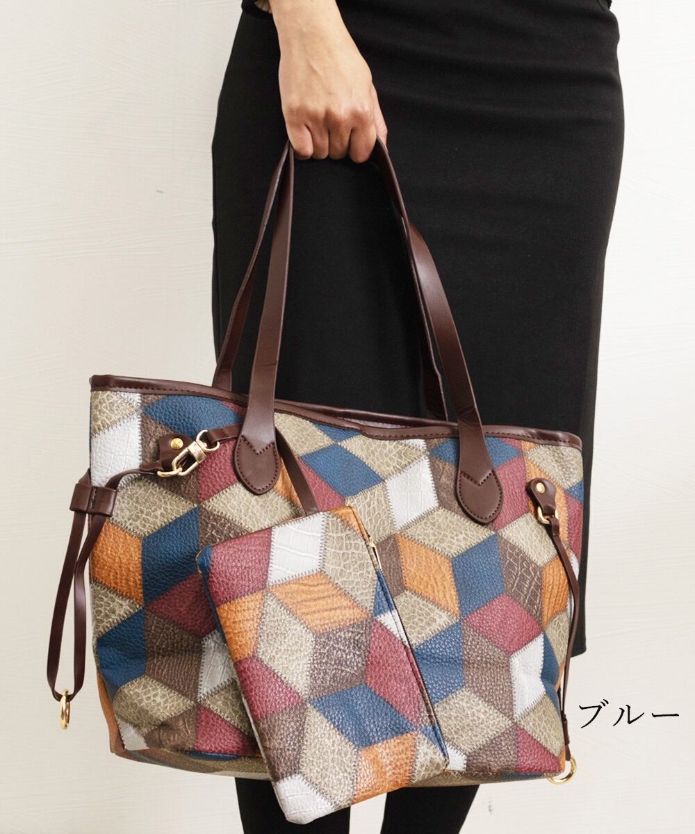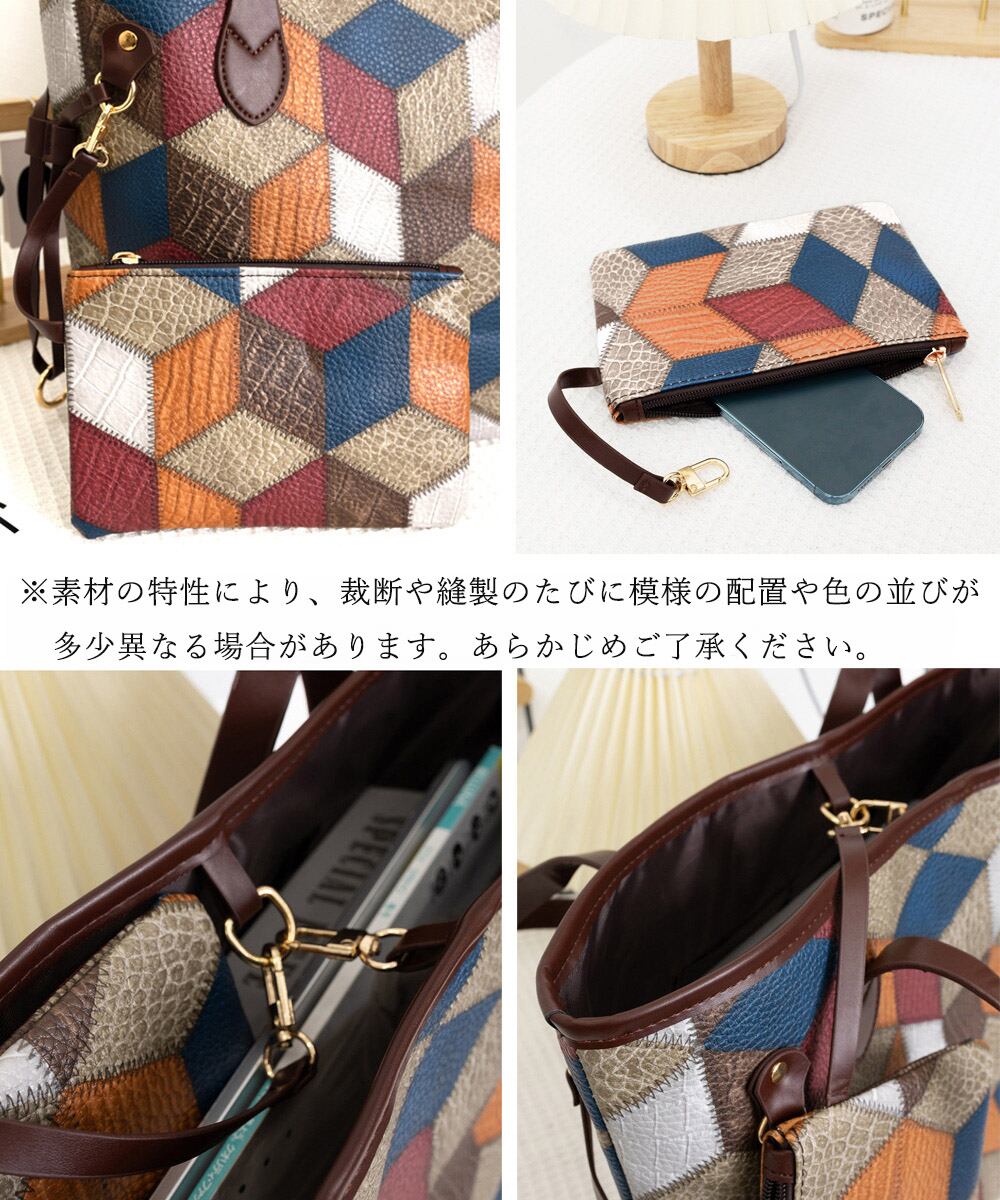 レディース バッグセット A4対応 幾何学模様バッグ 大容量 おしゃれ カラフル鞄 韓国風 肩掛けカバン 通勤通学