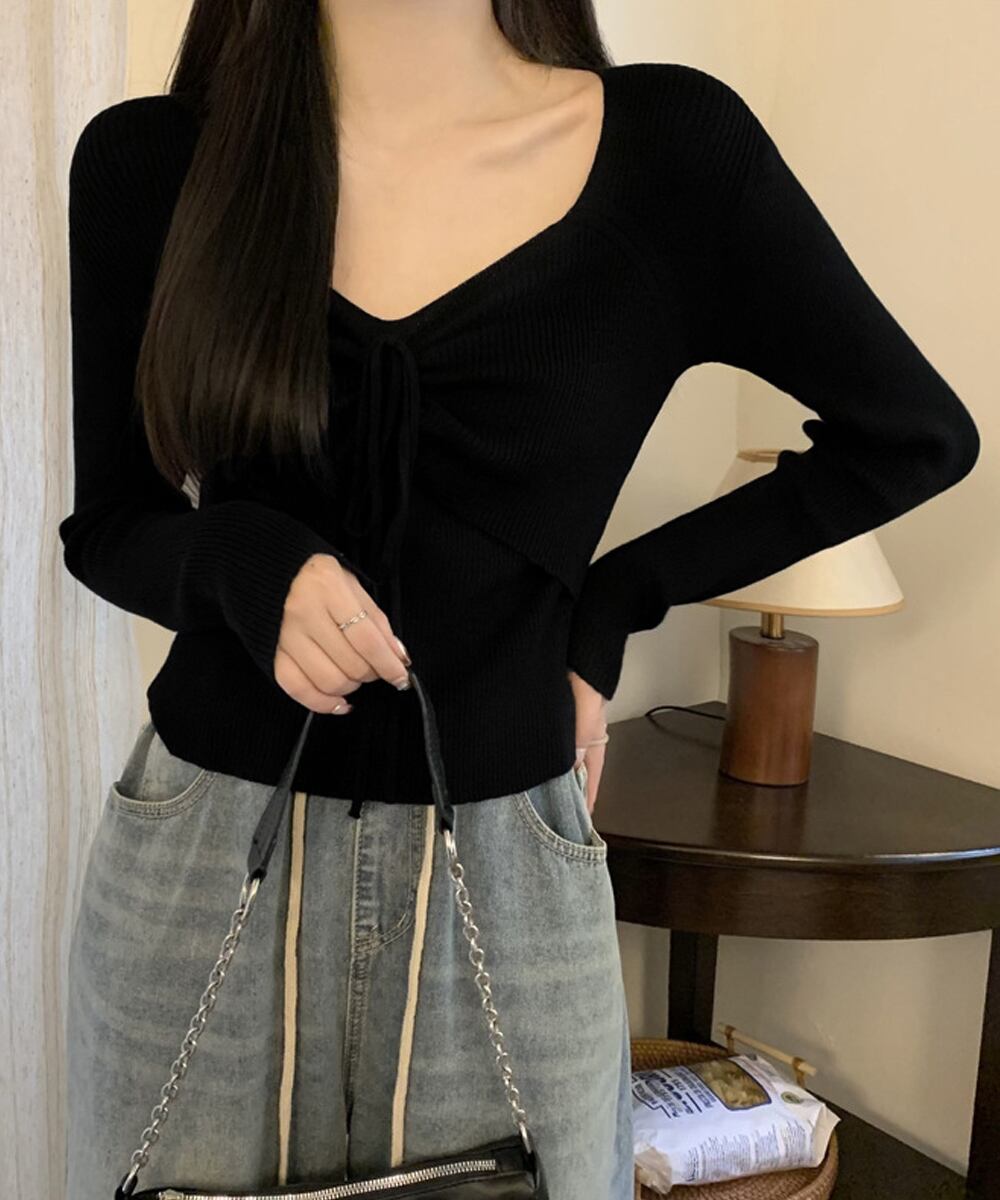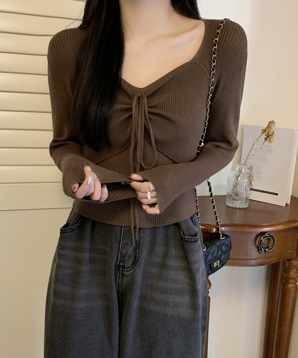 ニットトップス レディース リボン付き