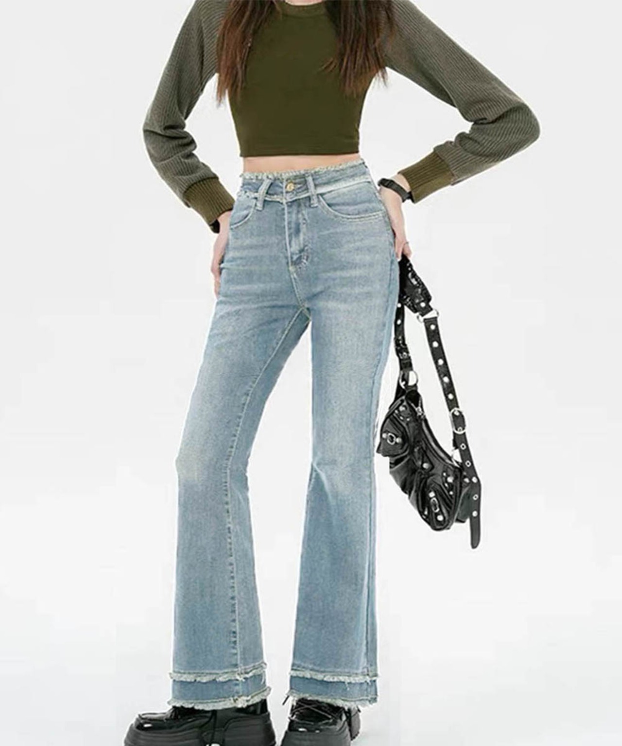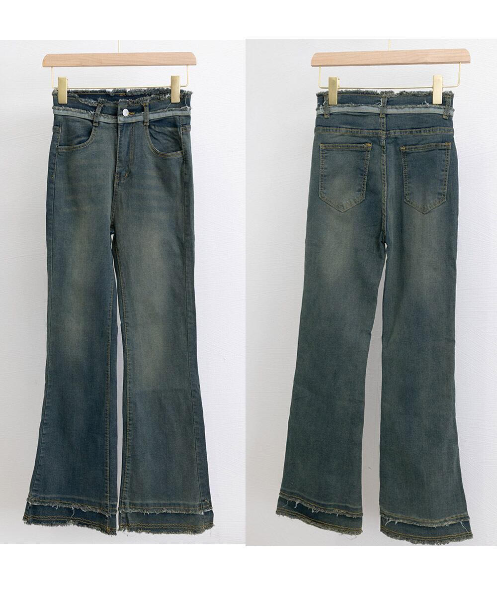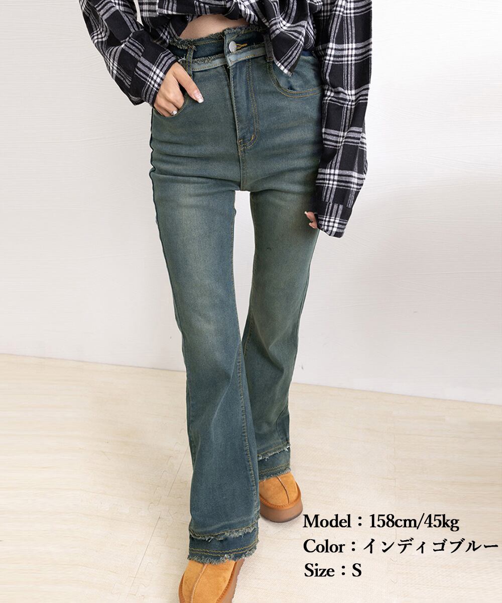 レディース ハイウエスト 切りっぱなし カットオフ ジーパン カジュアル ブーツカットデニム 細見えデニムパンツ 韓国風