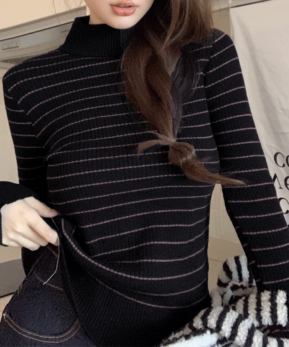 レディース 暖かいニットインナー プチハイネック ニットトップス 保温防寒 韓国風ニットプルオーバー あったか やわらか