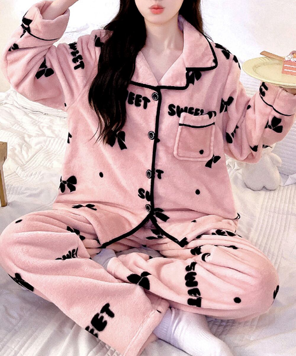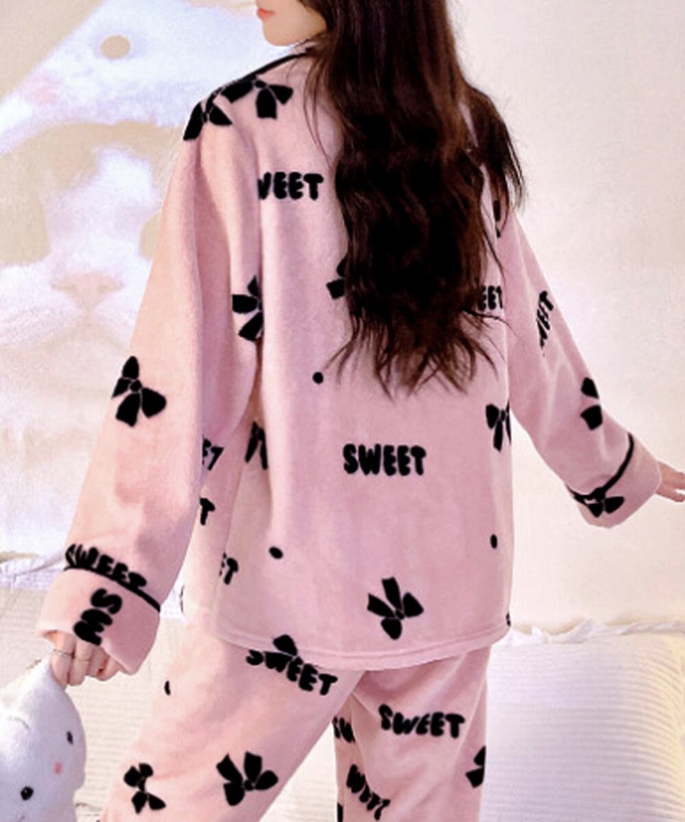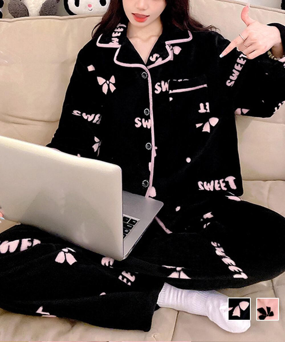 可愛いナイトウェア ボアパジャマ 厚手 韓国風部屋着セット