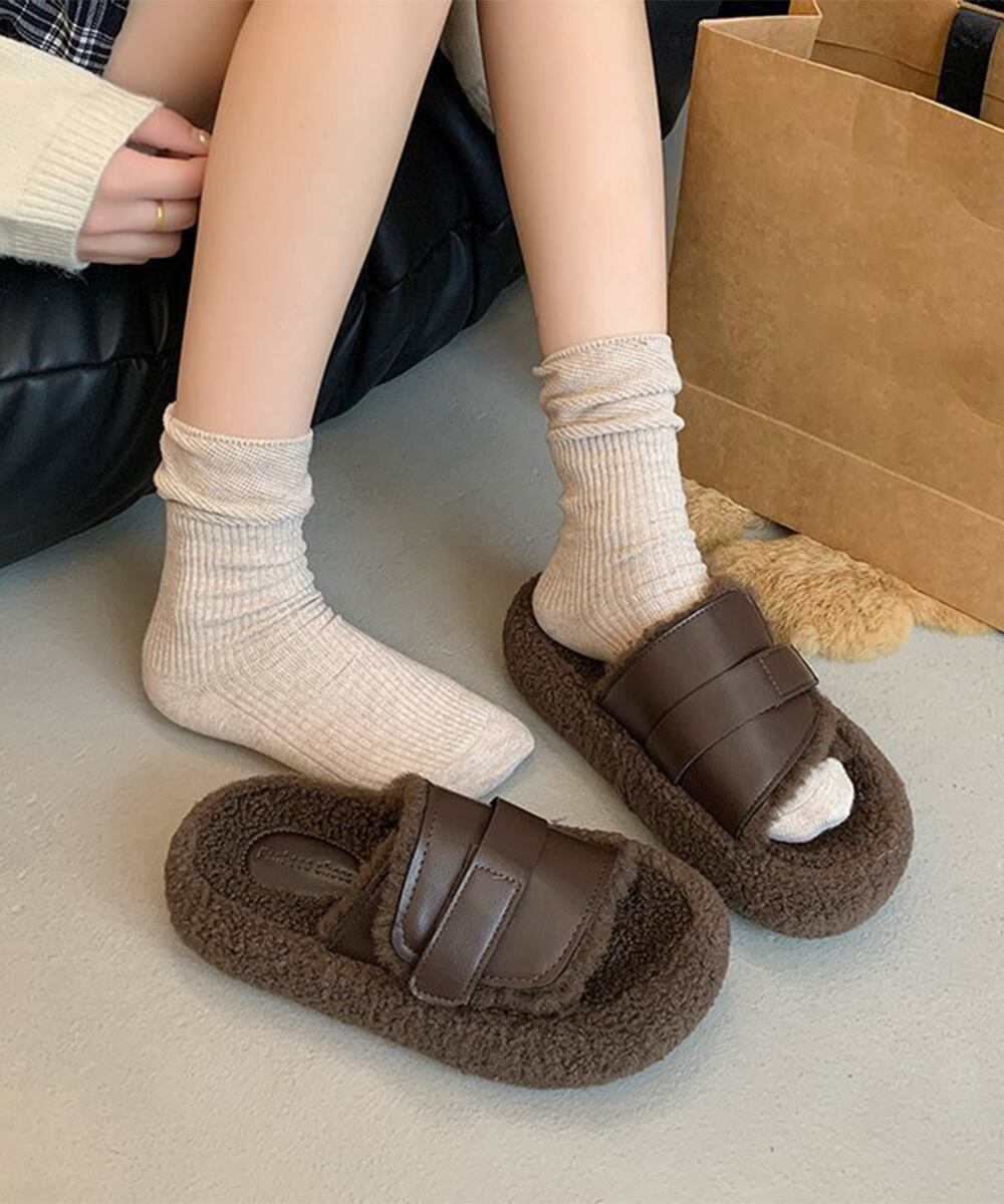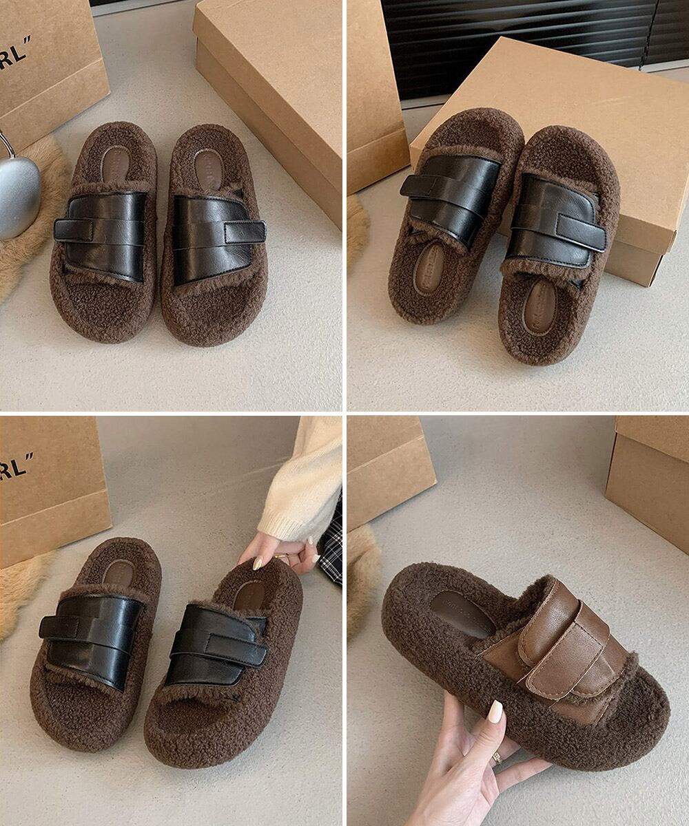 寒い季節にぴったり!ふわふわ暖かいフェイクファースリッパ。