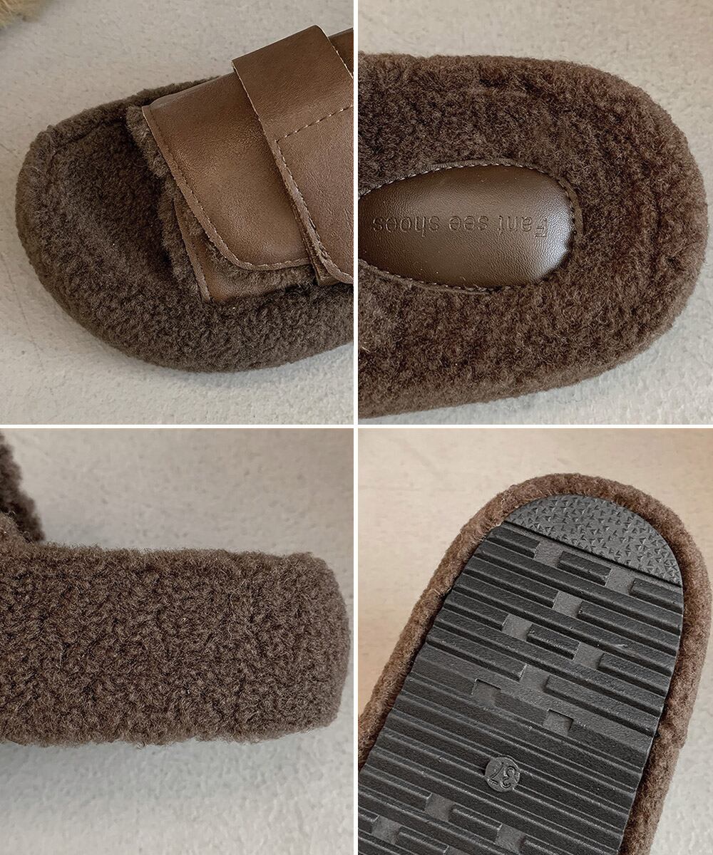 レディース 暖かい ぺたんこ靴 もこもこルームシューズ 履きやすい フラットコンフォートサンダル 疲れない秋冬靴 韓国風