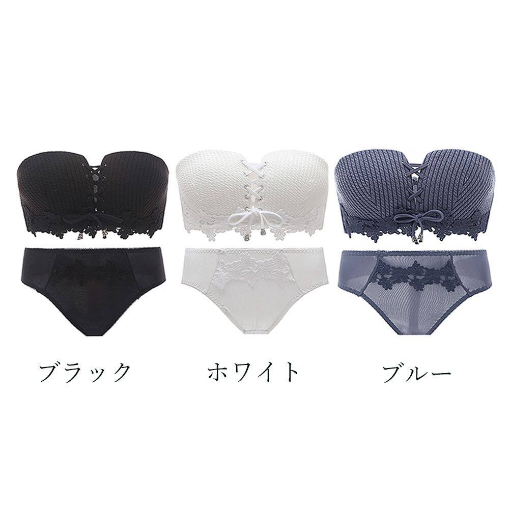 盛れる ブラトップ ベアトップ チューブトップ セクシーランジェリー 下着セット 大人韓国 レースアップ ブラセット安い